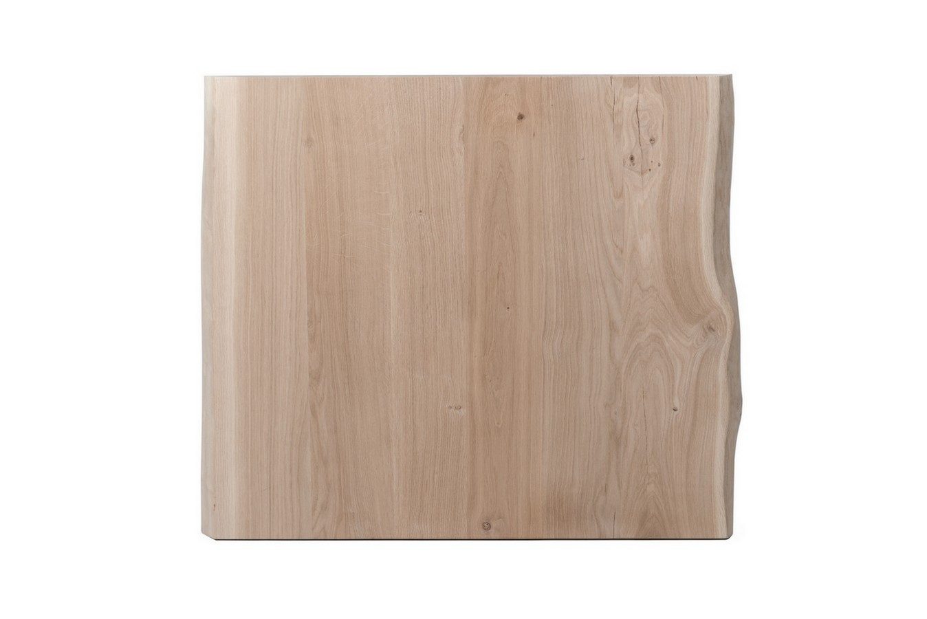 Die Eiche ist die am häufigsten vorkommende Baum- & Holzart in Deutschland. Da sie nicht nur sehr hart und widerstandsfähig ist, sondern sich auch gut bearbeiten lässt, wird sie beim Möbelbau für Holztische, Stühle, Kommoden und Bänke benutzt. Das Holz hat sichtbare Wuchsmerkmale und sieht dadurch rustikal aus. Unsere Tischplatte aus Eiche hat die von Natur aus gegebene graubraune Farbe. Dieses Produkt ist astfreier als andere, von uns für Sie bereitgestellte Tischplatten. Zwei Seiten dieser Eichenplatte haben eine gerade Kante, zwei Seiten eine organische Kante. Man kann diese quadratische Tischplatte mit den Maßen Breite und Tiefe 50 cm sowie Höhe 4cm super als eine an der Wand stehende Esstischplatte nutzen, sei es zuhause oder in einem kleinen rustikalen Café. Ein Hingucker ist dieses Werk mit seiner besonderen Kante allemal. Dieser Artikel ist in weiteren Größen verfügbar.