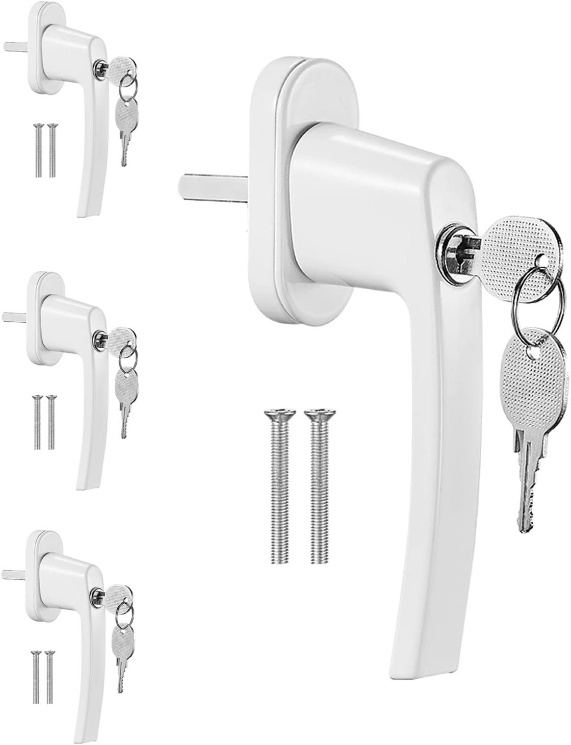 Lieferumfang | 4X abschließbare Fenstergriffe, 8X Schlüssel, 8X Olivenschrauben |