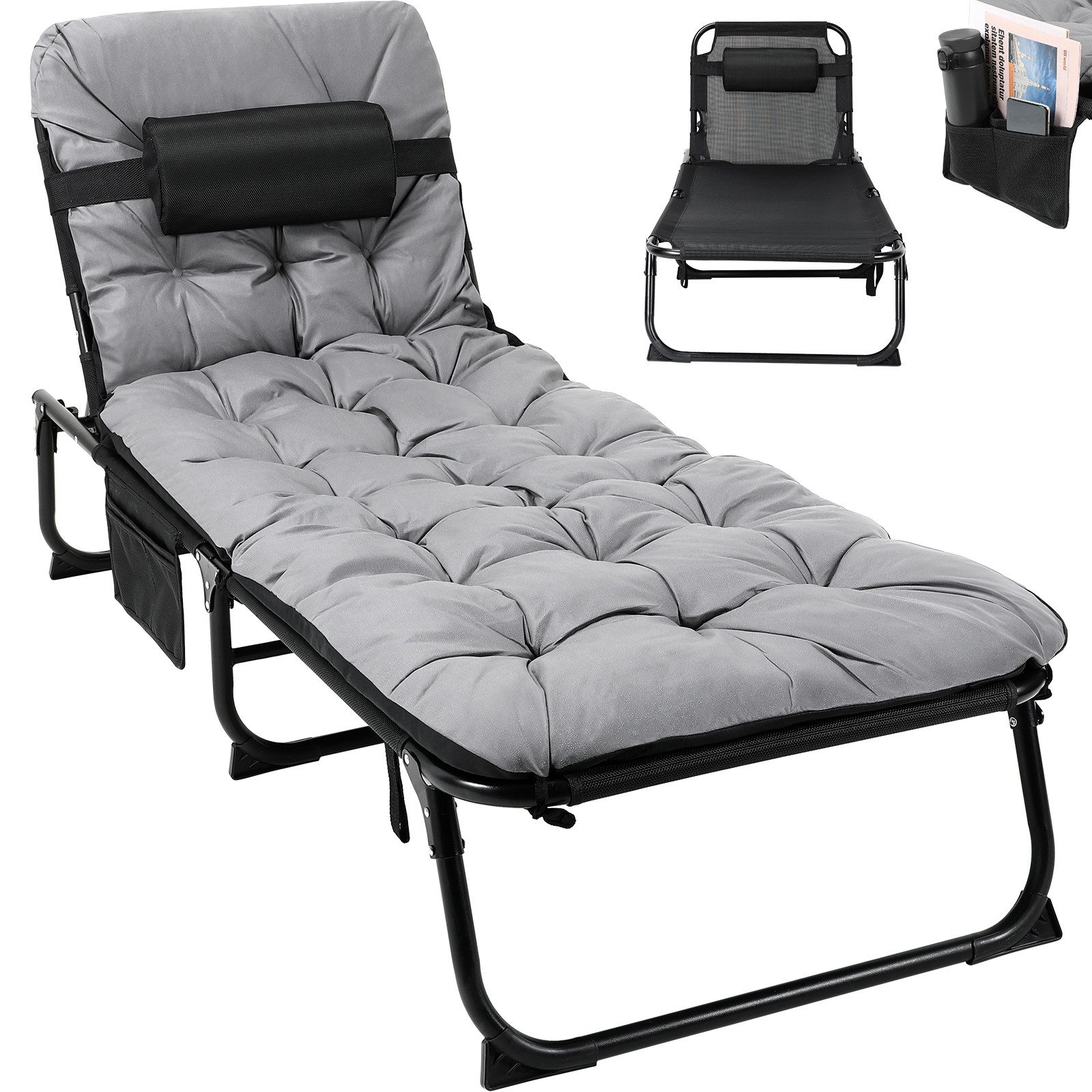 Klappbare Liege mit Technikstoff-Matratze und Kopfstütze - Schwarzgrau