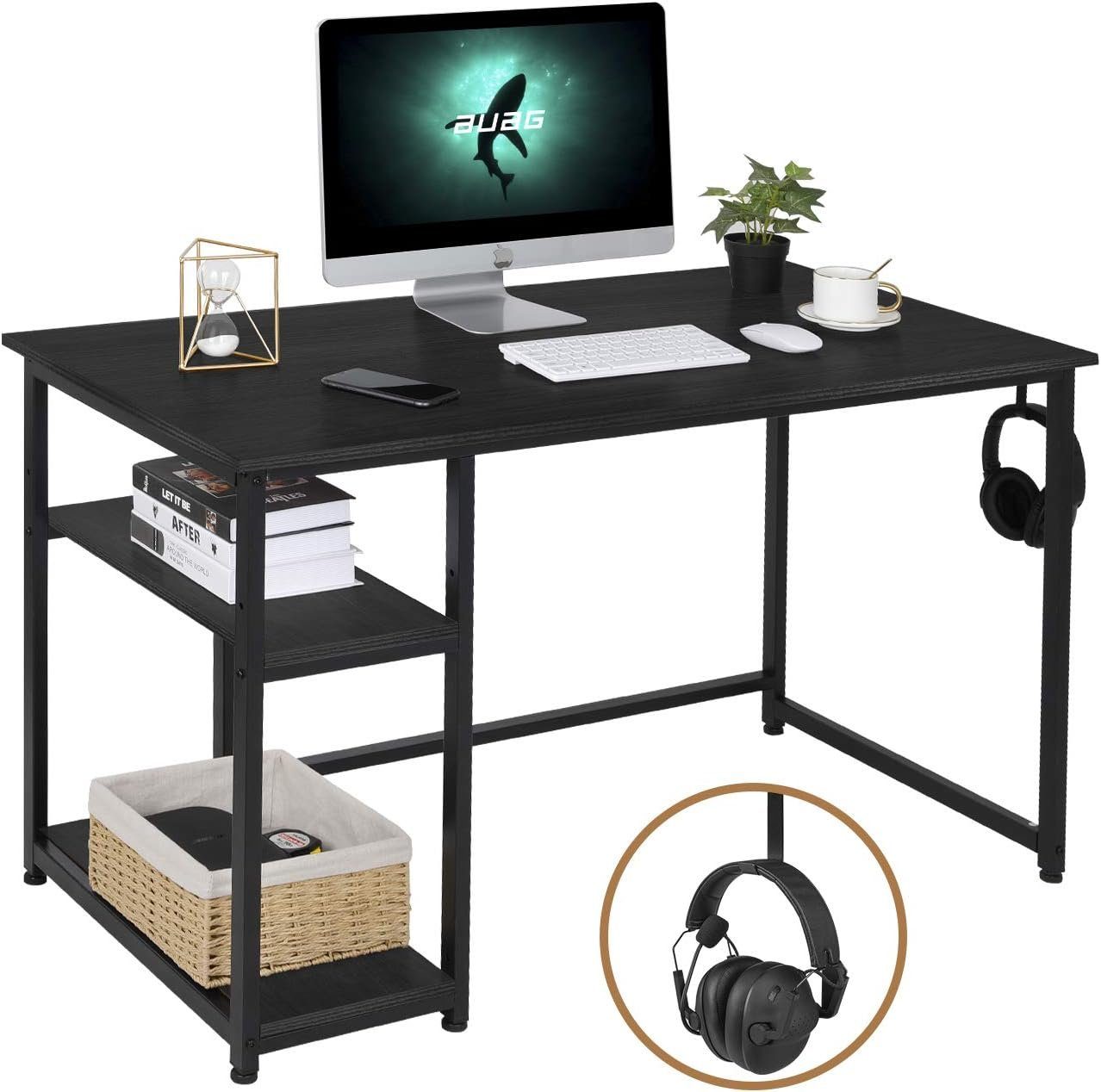 Schreibtisch 120cm mit 2 Regalebenen & Geräumiger Desktop Merkmal: 1. Einfache Montage 2. 120cm x 60cm Geräumige Tischplatte 3. Mit 2 Regalebenen auf der rechten oder linken Seite 4. Hat einen Eisenhaken 5. Echtholz Textur, kein Schreiben Choppy