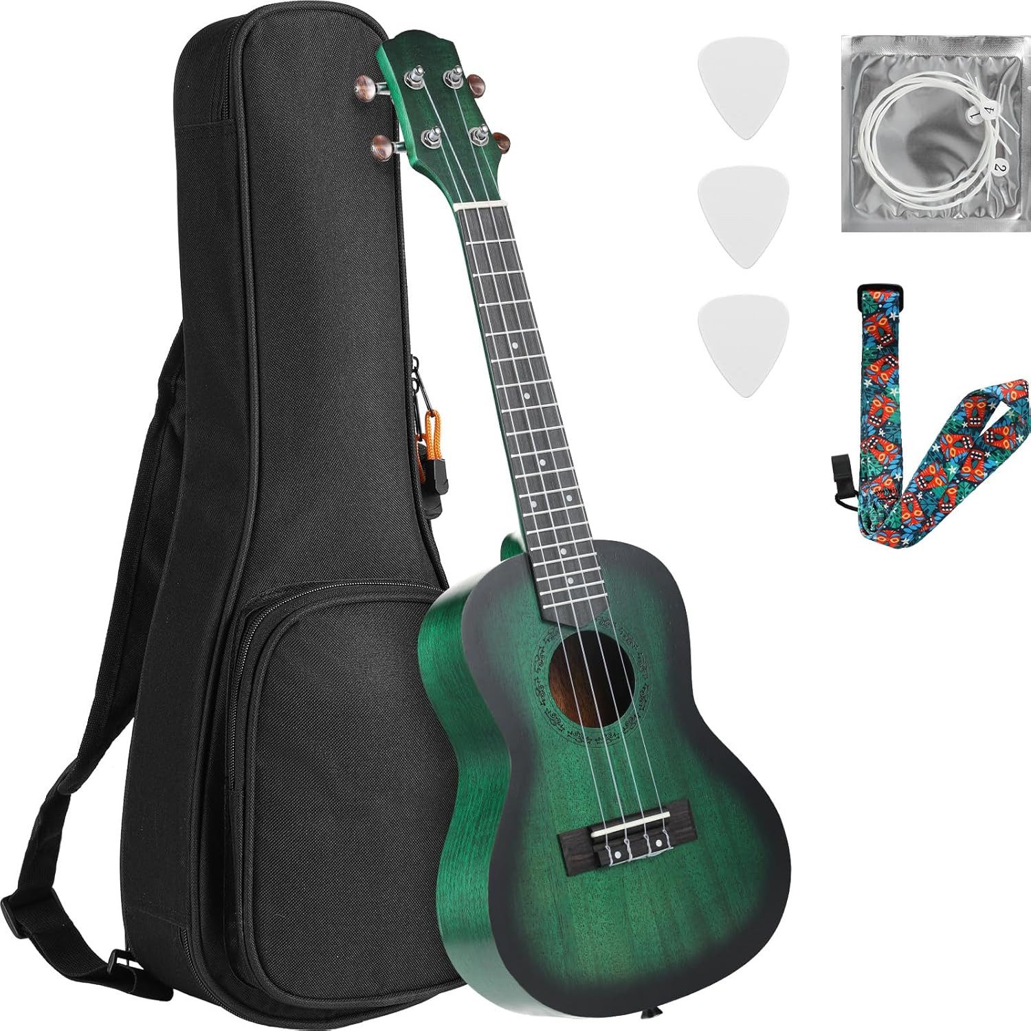 Hinweis Lieferumfang | 21-Zoll-Ukulele, professionelle Performance-Tasche, Ukulele-Saiten, Ukulele-Gurt und Ukulele-Plektren |