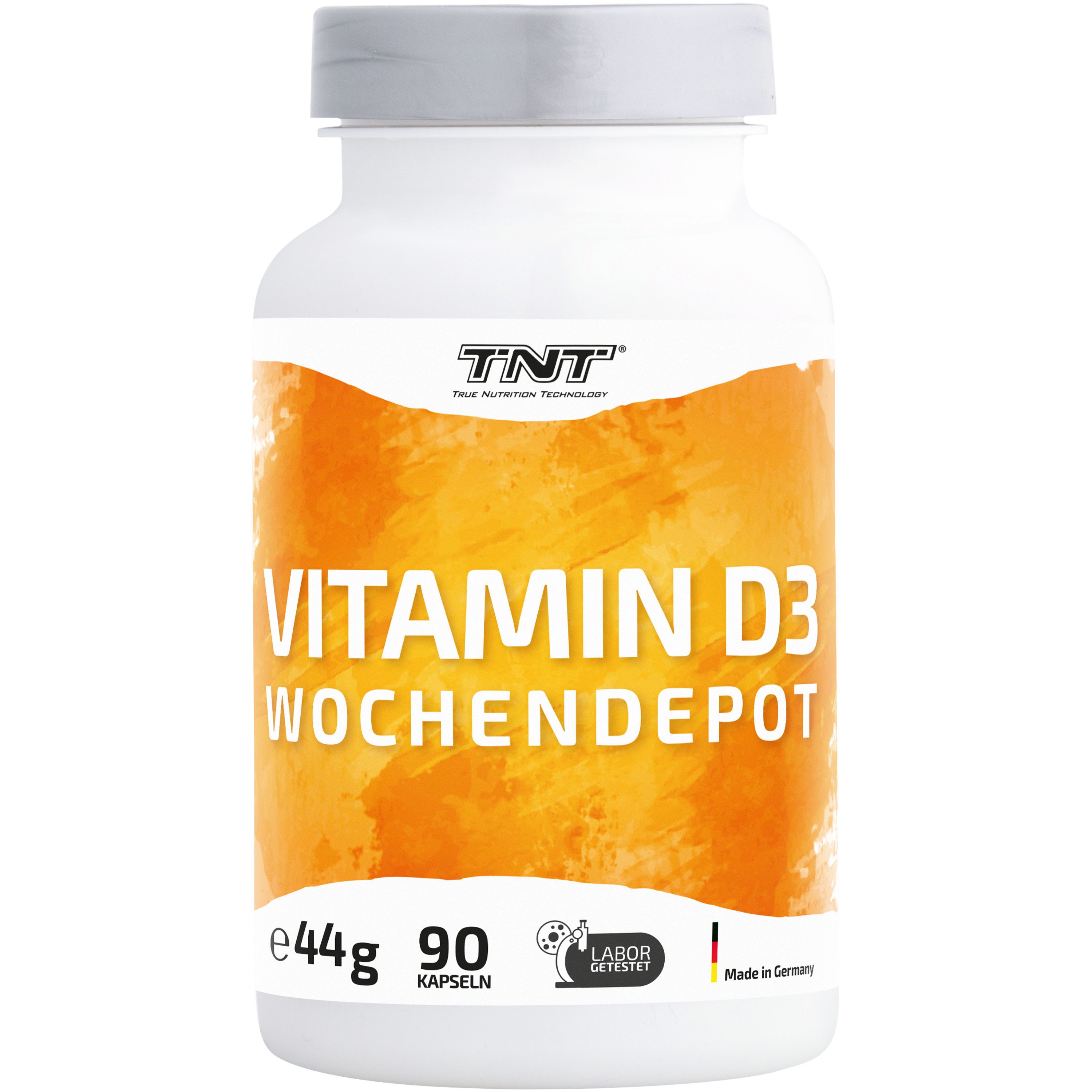 Das TNT Vitamin D3 Wochendepot nutzt die Speicherfunktion des Körpers, mit der er die zugeführte Menge an Vitamin D3 speichern kann. Das geschieht im körpereigenen Fettdepot - deshalb kann man mit nur einer Kapsel pro Woche den kompletten Bedarf an Vitamin D3 decken. Der Körper ist dadurch für 7 Tage ausreichend versorgt.