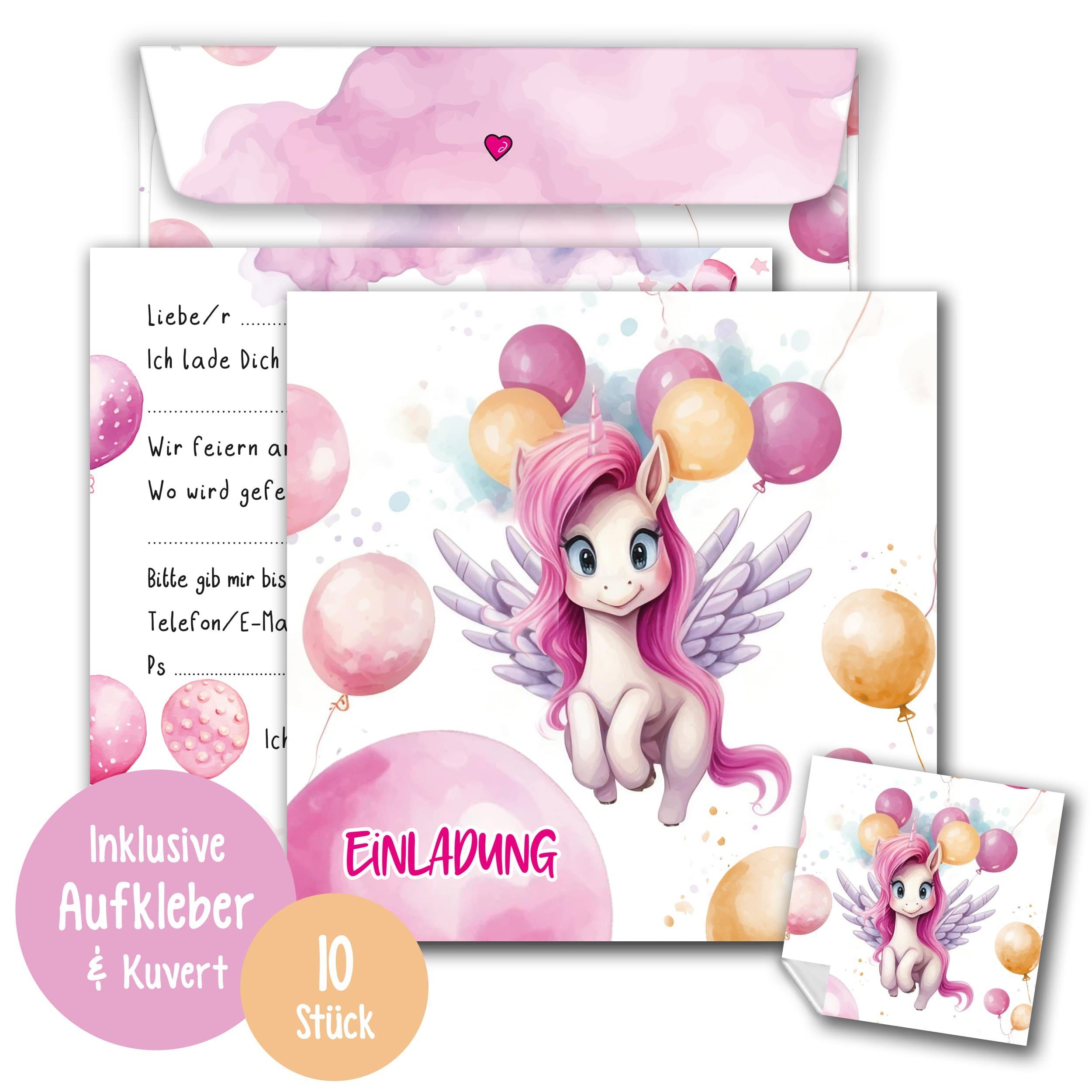 Mit dem praktischen Set von 10 Karten, Umschlägen und Einhorn-Stickern wird die Vorbereitung zum Kinderspiel.