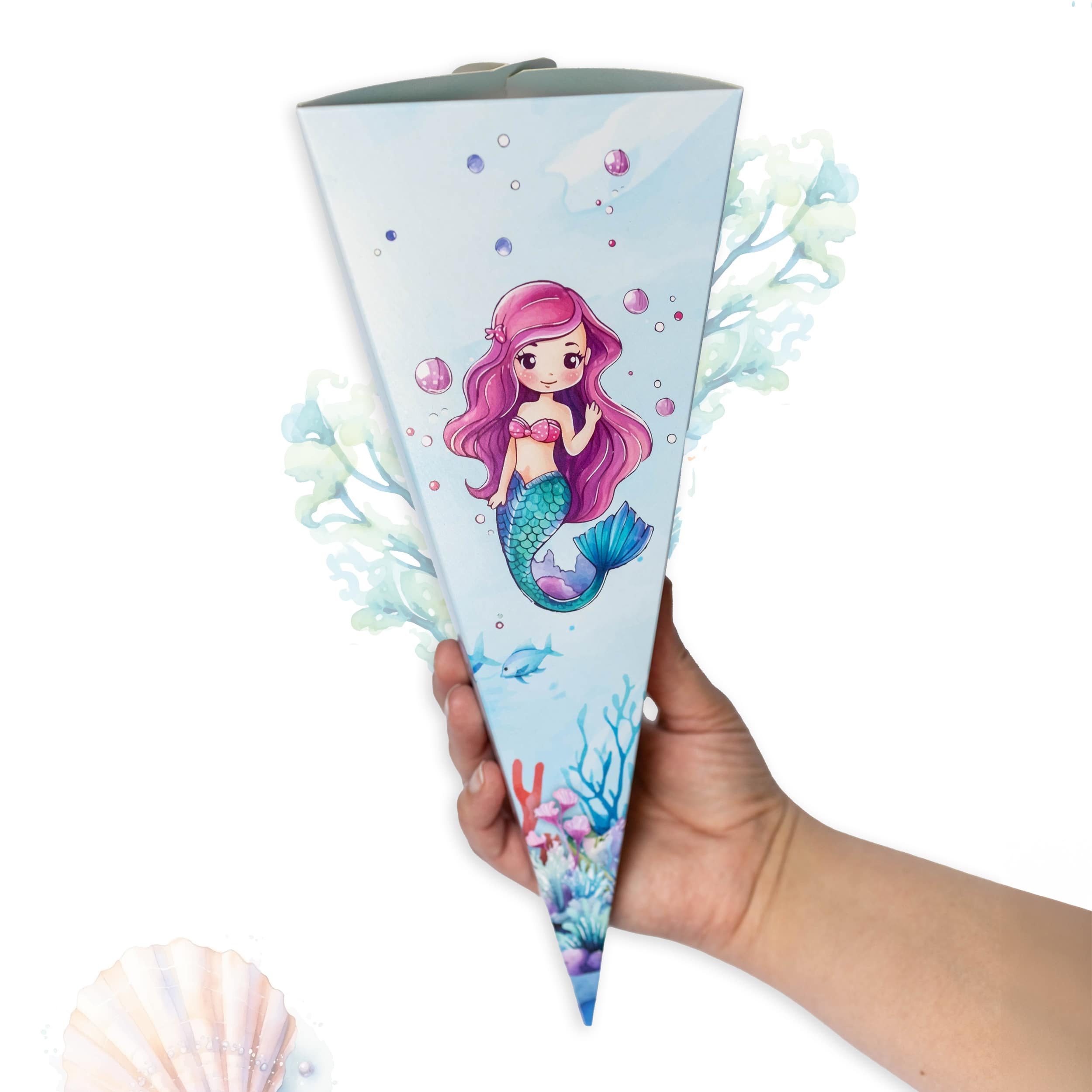Dann ist unsere Mini-Schultüte im süßen Meerjungfrau-Stil genau das Richtige!