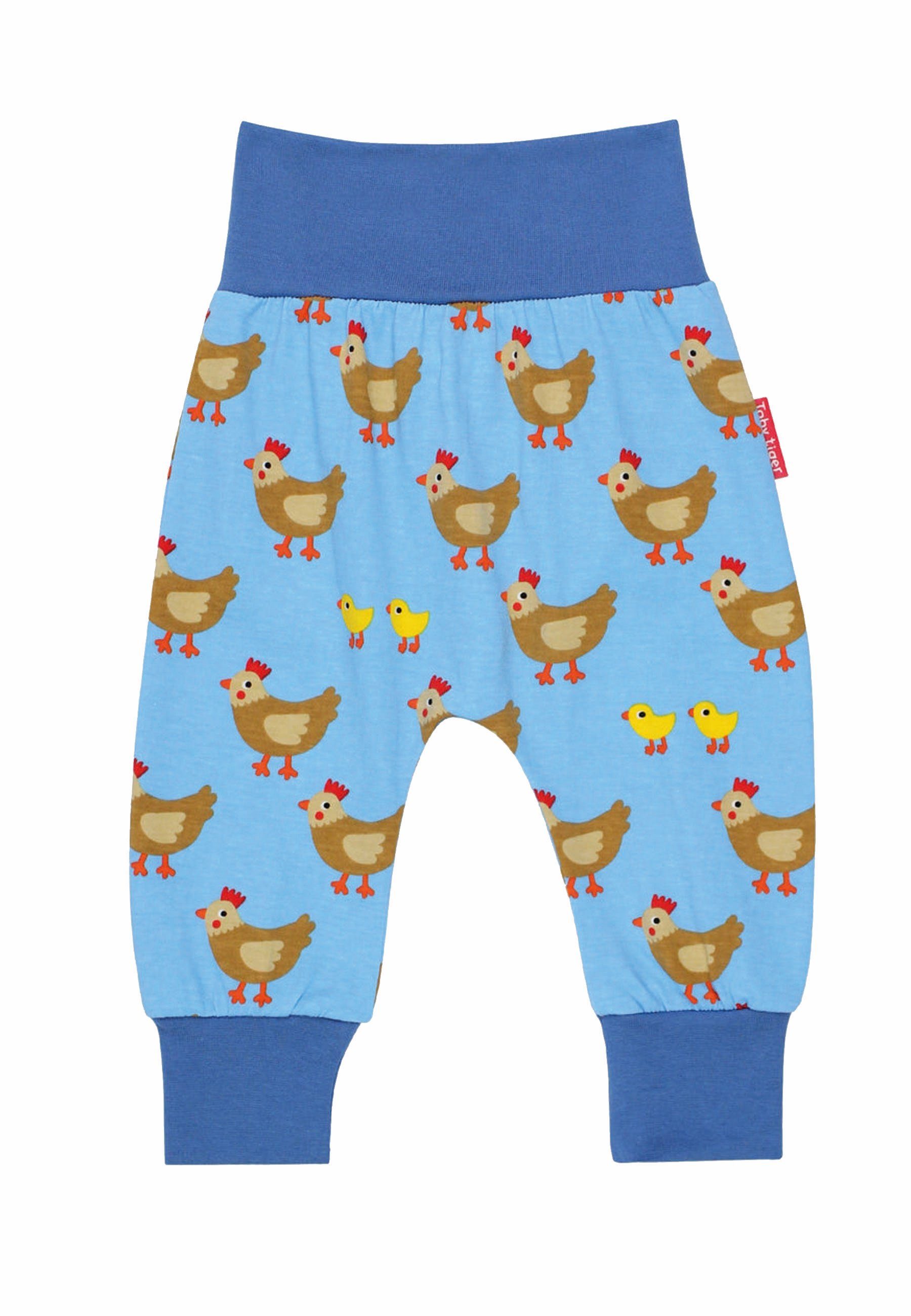 Die wilden Hühner sind los auf unserer süßen Babyhose mit Hühner und Küken Print. Weiche, farblich abgesetzte Bündchen und ein breiter elastischer Taillenbund zum Umschlagen geben zusätzlichen Komfort. Mehr Style mit Federvieh findet ihr in unserer Toby Tiger Kindermode Kollektion.