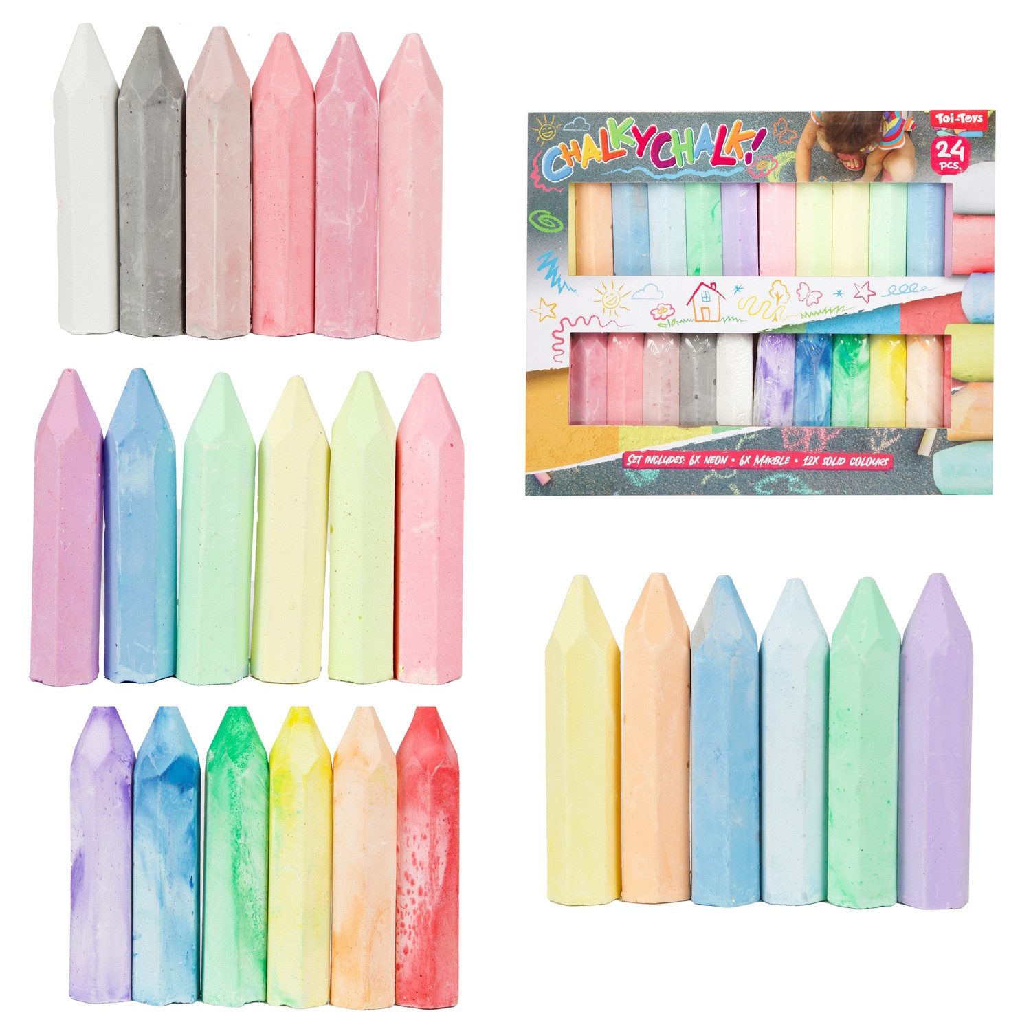 24er Malkreide-Set: 6 Neon-, 6 Marmor-, 12 klassische Farben. Ideal für Straßenkunst, extra für Kinderhände.