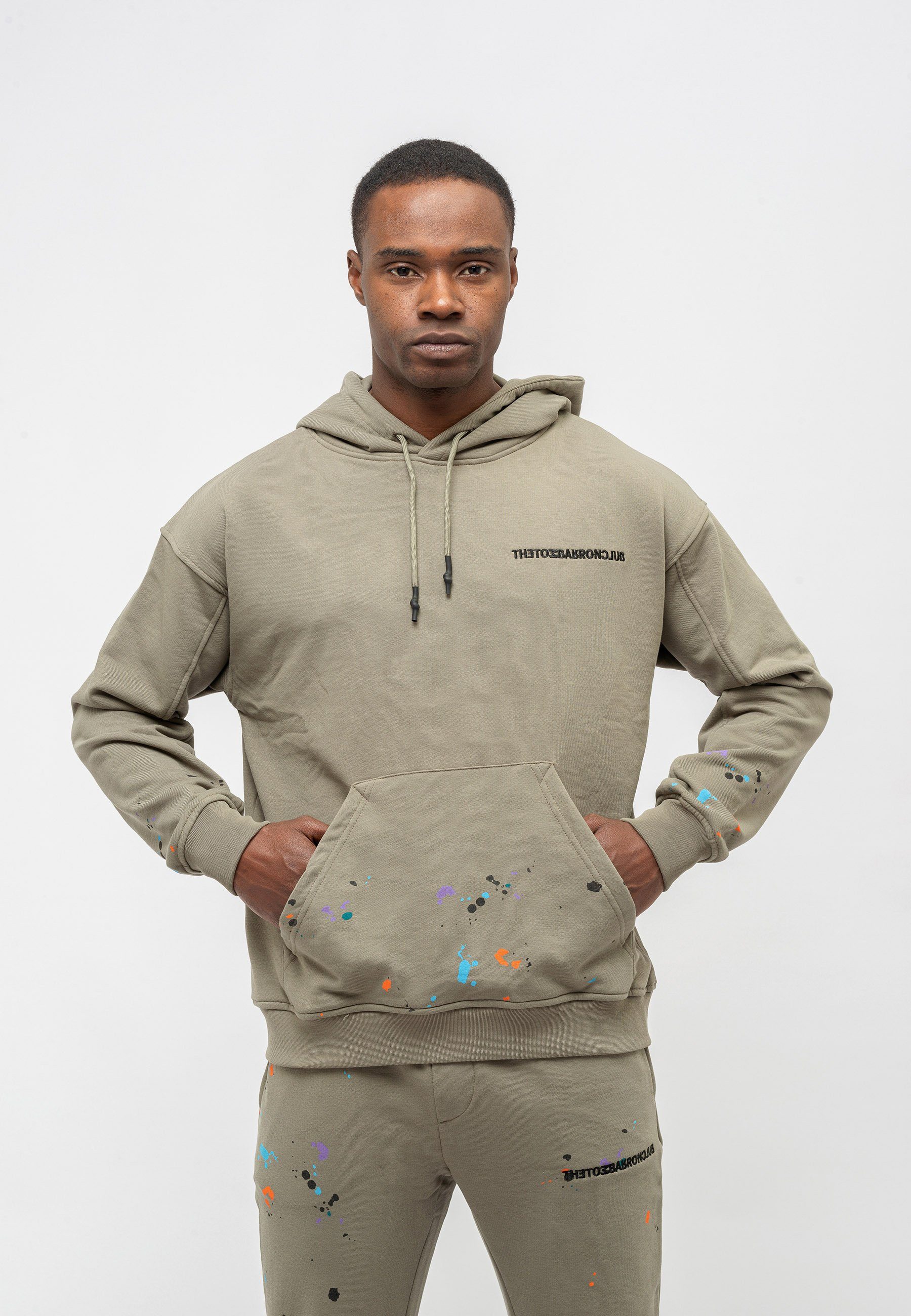 TOM BARRON ÜBERGRÖSSER TRAININGSANZUG FÜR HERREN, 2-TEILIGES SET, LÄSSIGER JOGGING-OUTFIT, SPRITZDRUCKDESIGN