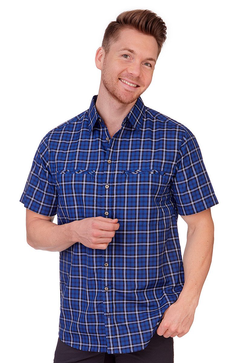 Mit dem schmucken, robusten Wanderhemd Rubino gehts gut gerüstet in die Berge. Das hochwertige, im bequemen Regular Fit-Schnitt gefertigte Herrenhemd mit dem zünftigen Karo-Webmuster in Tartan-Art besteht aus strapazierfähigem Material mit Zusatzfunktionen, hat einen klassischen, leicht verstärkten Kentkragen, kurze Ärmel sowie zwei doppelte Paspeltaschen aus 45° gedrehtem Stoff mit Reißverschluss und farblich passenden Zippern. Die spezielle SunProtect-Ausrüstung mit UV-Blocker schützt vor schädlicher UV-Strahlung, das DrySystem leitet Feuchtigkeit schnell nach außen und hält die haut immer trocken und die Comfort-Funktion sorgt auch bei starker körperlicher Beanspruchung für optimalen Tragekomfort. Die feinen Knöpfe im Marmor-Look sind mit dem Labelnamen versehen. Das minimale Gewicht und der Rücken mit den oben beidseitig eingearbeiteten Falten garantieren zusammen eine maximale Bewegungsfreiheit. Der obere Rücken ist zudem angenehm mit Netzmaterial gefüttert und der Saum ist leicht gewölbt. Bitte beachten Sie den Größenzuschlag ab Размер 49/50 (4XL).