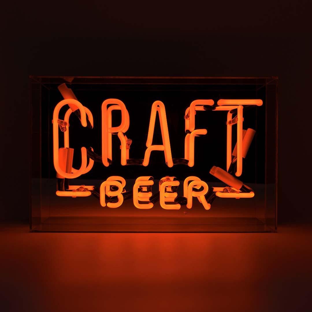Verleihen Sie Ihrem Zuhause das Ambiente einer Craft-Bier-Kneipe mit unserer Large Neon Box "Craft Beer". Dieser leuchtende Schriftzug in lebhaftem Orange bringt die Frische eines frisch gezapften Pilseners in jeden Raum.