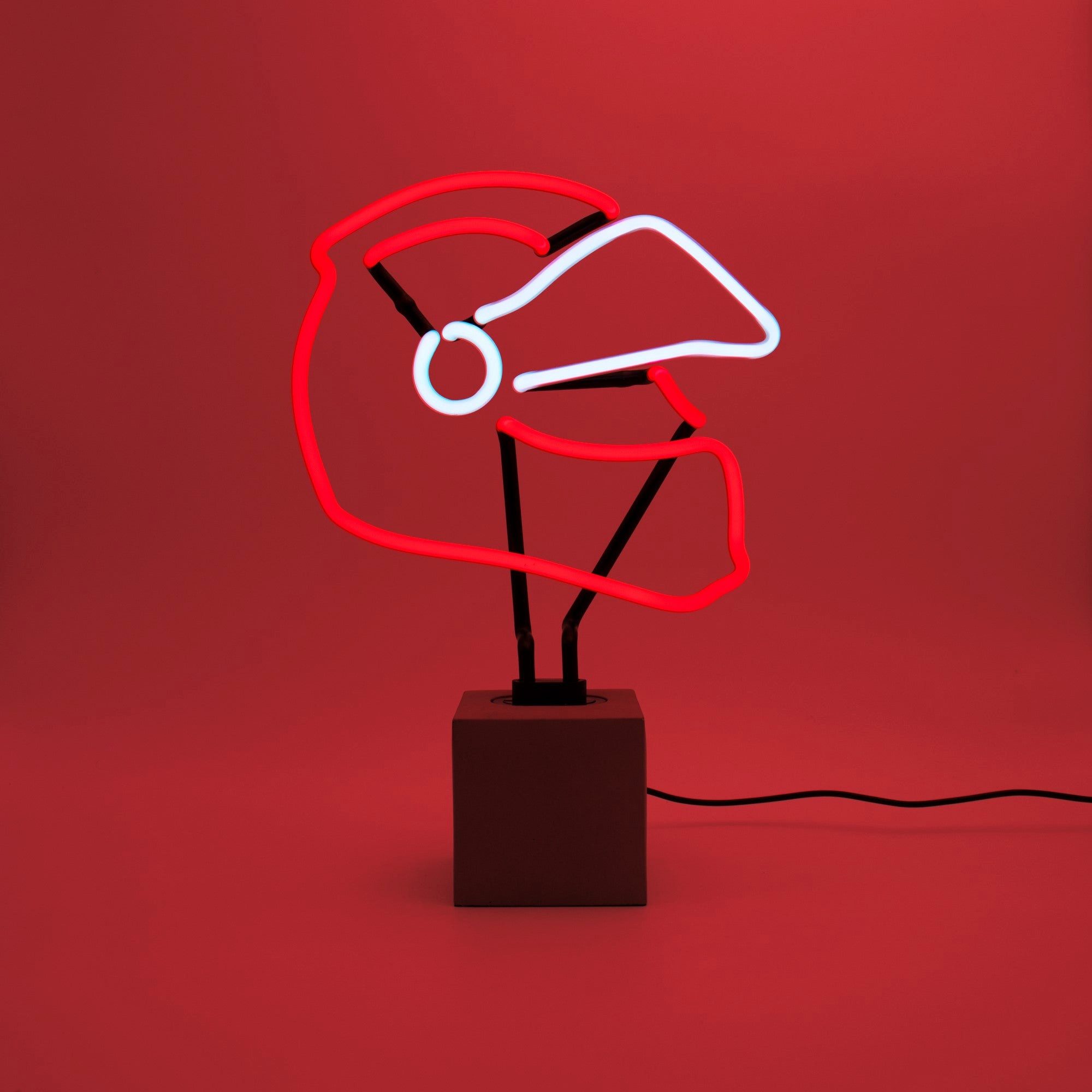 Bringen Sie einzigartigen Retro-Neon-Glanz in Ihr Zuhause mit dem Stand Neon "Helm"! Dieses handgefertigte Lichtobjekt kombiniert: