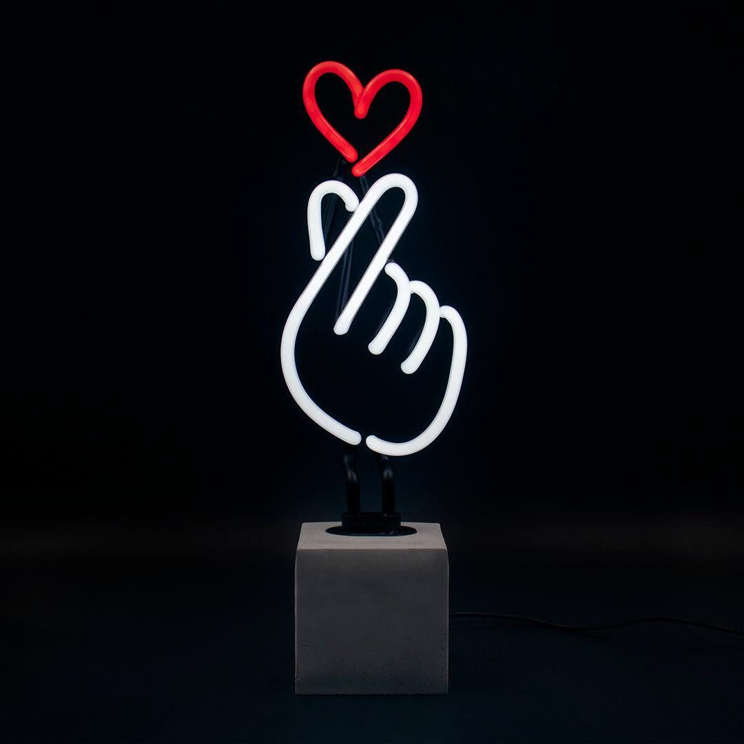 Bringen Sie mit dem Stand-Neon "Herz Hand" von TOM NEON stilvolle Beleuchtung in Ihr Zuhause. Diese handgefertigte Tischlampe aus echtem Glas Neon in Weiß und Rot steht auf einem robusten Betonfuß und schafft sofort eine liebevolle Atmosphäre.