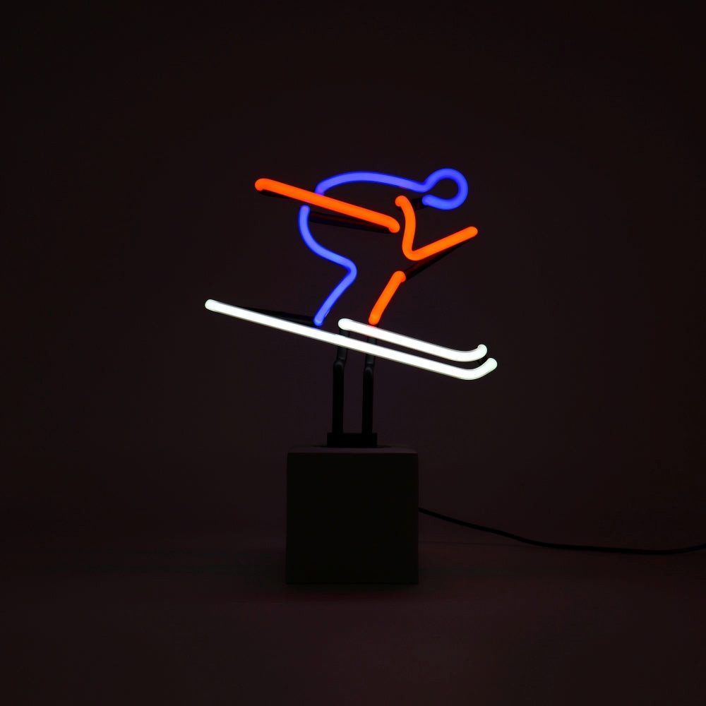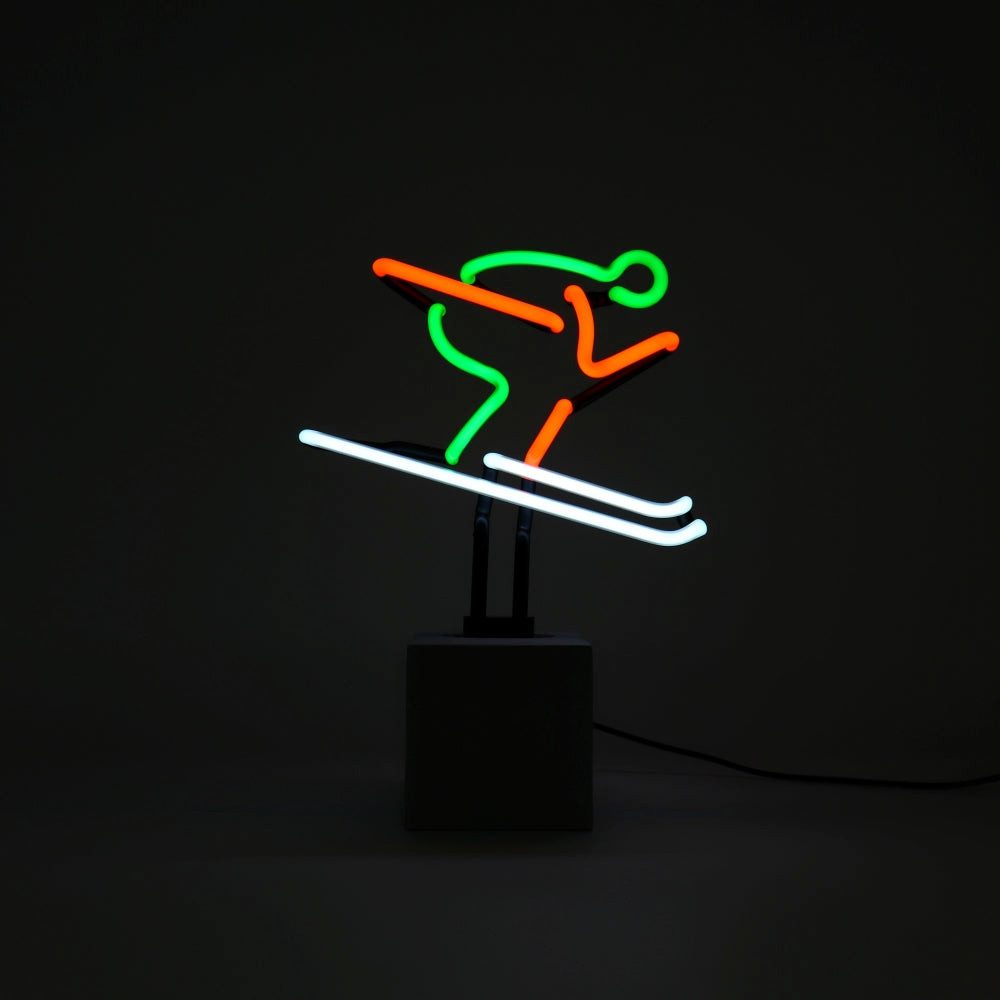 Entdecke die aufregende Welt des Wintersports mit unserem handgefertigten Glas Neon Schild 'Ski'. Dieses auffällige Stück in leuchtendem Neon Blau oder Neon Grün bringt alpine Energie direkt in dein Zuhause.