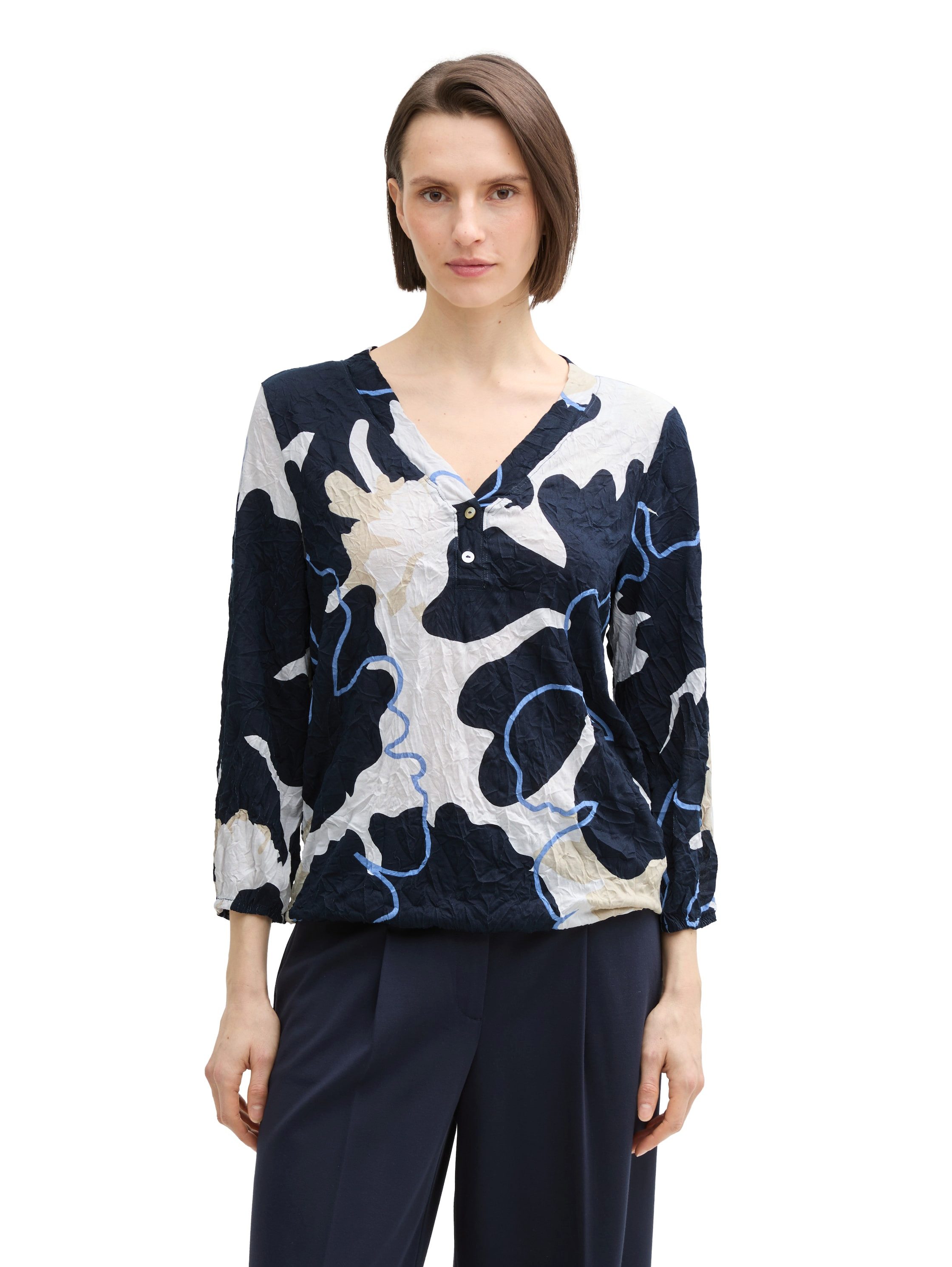 Mit dem Blusenshirt von TOM TAILOR lassen sich schnell neue Styles kombinieren. Durch den Aufdruck wirkt es lässig und peppig. Die 3/4-langen Ärmel enden in einem elastischen Bund. Dieses Shirt hat einen V-Ausschnitt mit Knopfleiste und ist taillenbedeckend sowie locker geschnitten, sodass du dich wohlfühlst.