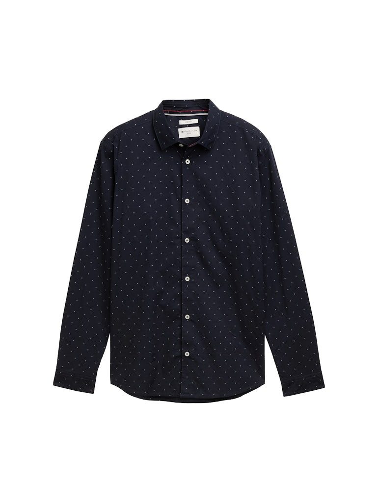 Dieses elegante Popeline-Hemd von TOM TAILOR überzeugt durch minimalistisches Muster und komfortablen Stretch – ideal für stilbewusste Herren, die modischen Chic mit Bewegungsfreiheit verbinden.