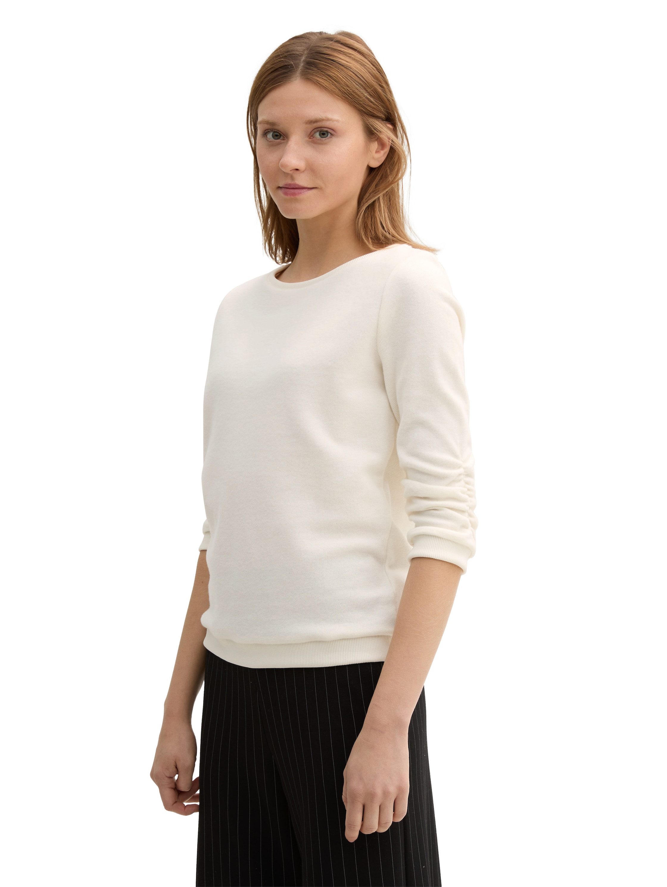 Das Sweatshirt von TOM TAILOR Denim ist praktisch, gemütlich und stylisch — einfach reinschlüpfen und fertig ist der Casual-Style. Dieses Sweatshirt hat einen Rundhalsausschnitt und ist hüftlang sowie basic geschnitten, sodass dein Oberkörper dezent in Szene gesetzt wird. Das Oberteil hat eine Raffung, die den Schnitt insgesamt auflockert.