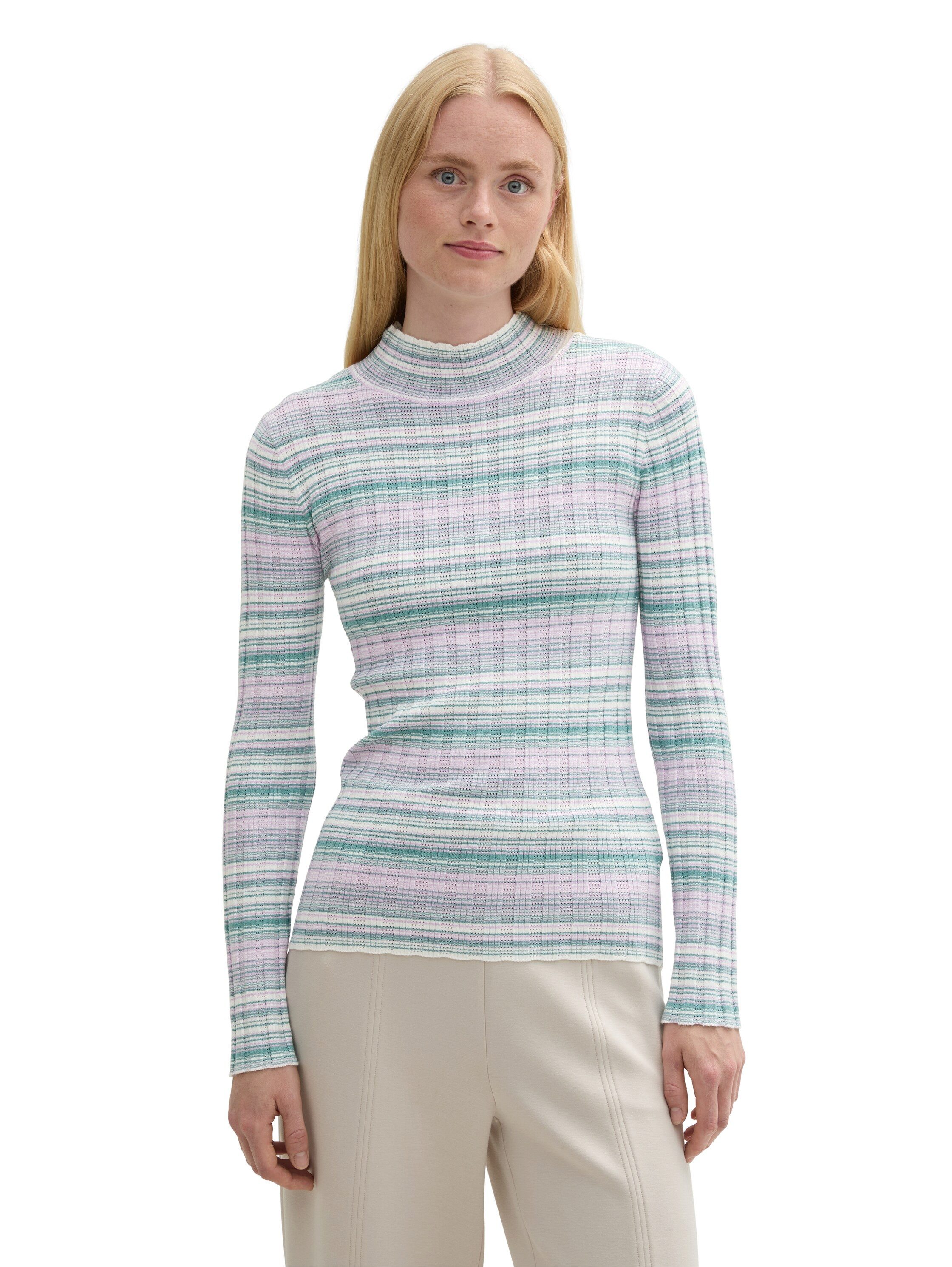 Du möchtest ein Outfit, das hervorsticht? Dann schau dir diesen Strickpullover von TOM TAILOR Denim genauer an. Auch wenn der Rest deines Outfits schlicht ist, bringt er mit dem Ringel-Look Dynamik und Frische in den Look. Der Stehkragen steht, wie der Name bereits verrät, gerade nach oben ohne umgeschlagen zu werden. Dadurch eignet er sich vor allem für schicke und toughe Outfits. Die langen Ärmel enden in einem gewellten Abschluss. Dieser Pullover hat einen Rundhalsausschnitt und ist hüftbedeckend.