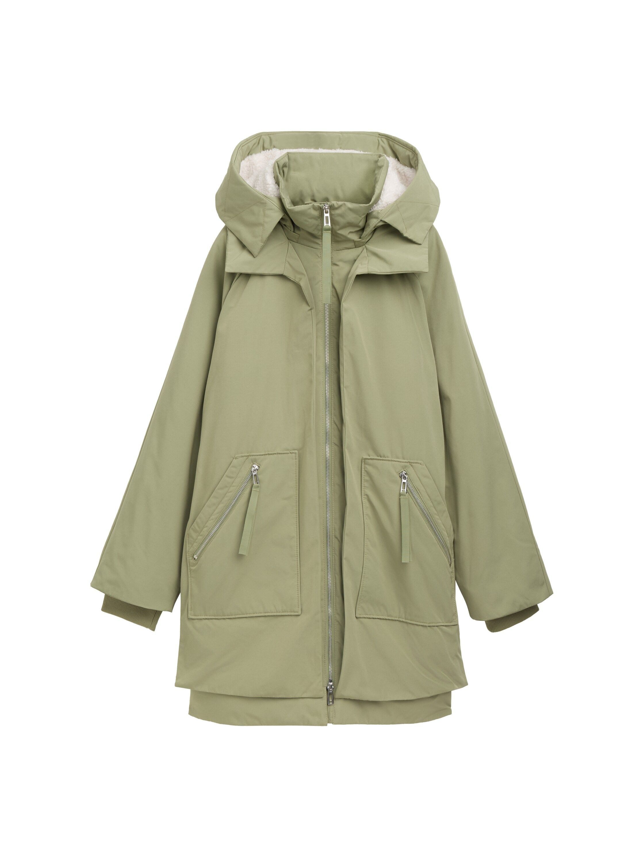 Die Winterjacke kann mit einer eng anliegenden oder gerade geschnittenen Jeans unkompliziert ergänzt werden. Für dein Freizeit-Outfit trägst du dazu bunte Sneaker oder klassische Boots. Für einen etwas schickeren Auftritt kannst du zu einer schlichten Chinohose und Loafern greifen.
