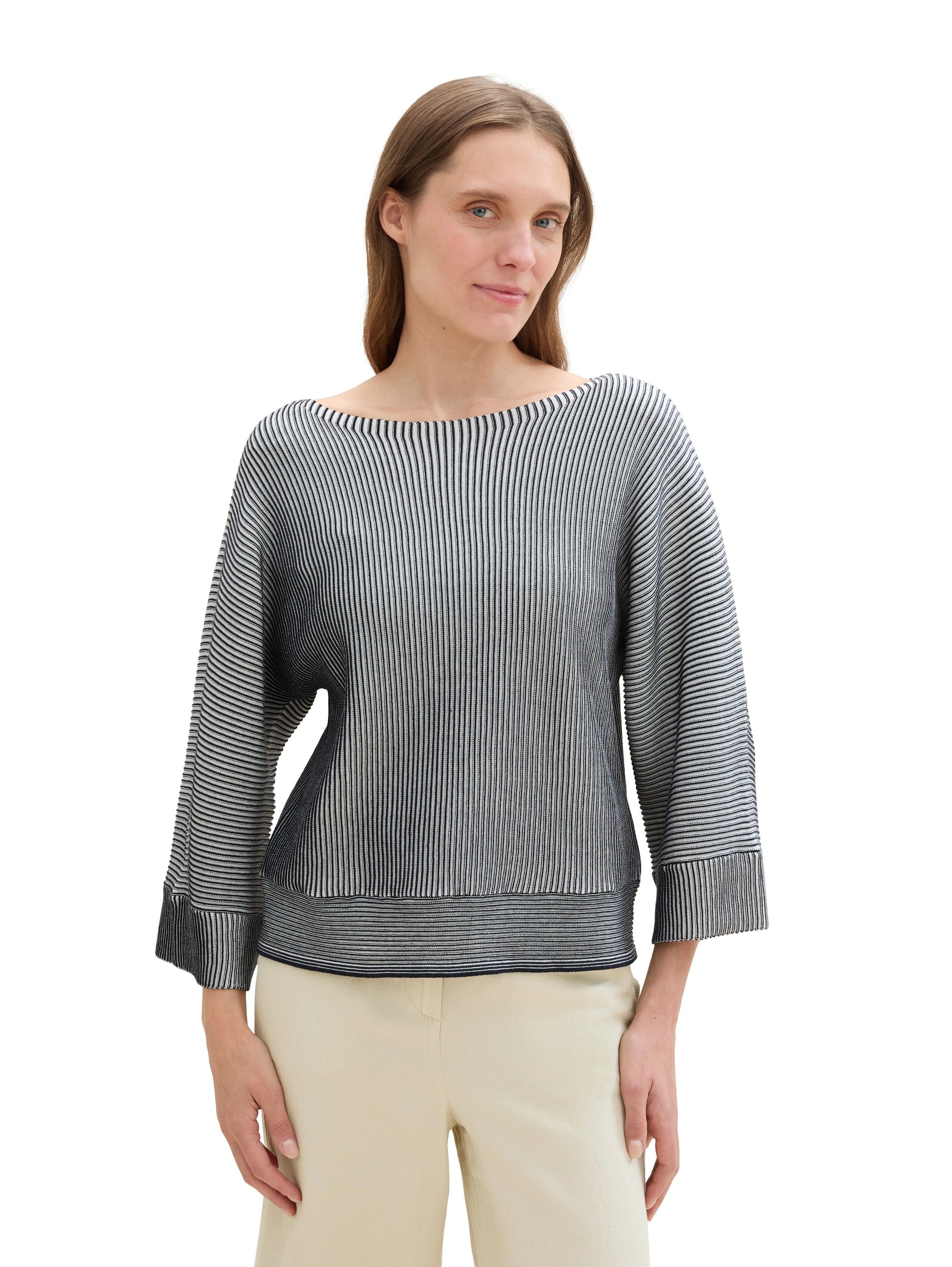 Der Fledermauspullover von TOM TAILOR ist nicht nur an kalten Tagen eine praktische Wahl, sondern auch ein Feel-good-Oberteil für zu Hause. Die 3/4-langen Ärmel enden in einem extrabreiten Bündchen. Dieser Pullover hat einen U-Boot-Ausschnitt und ist normal sowie locker geschnitten, sodass du dich wohlfühlst.