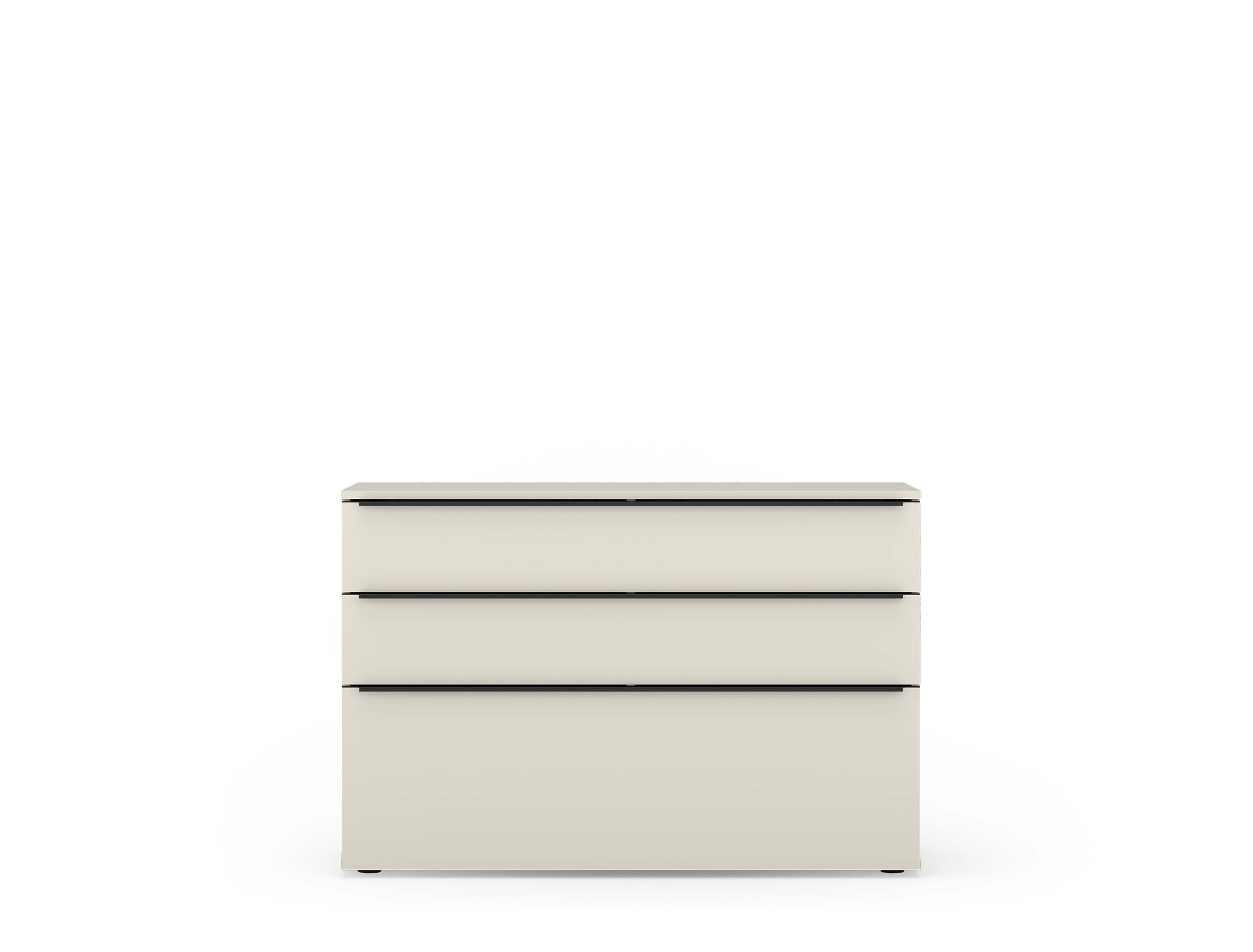 Optik | Light Taupe oder Light Oak Uni oder Holzdekor. Horizontale Optik mit harmonischen oder markanten Farbakzenten durch Griffe und optionale Füße. |