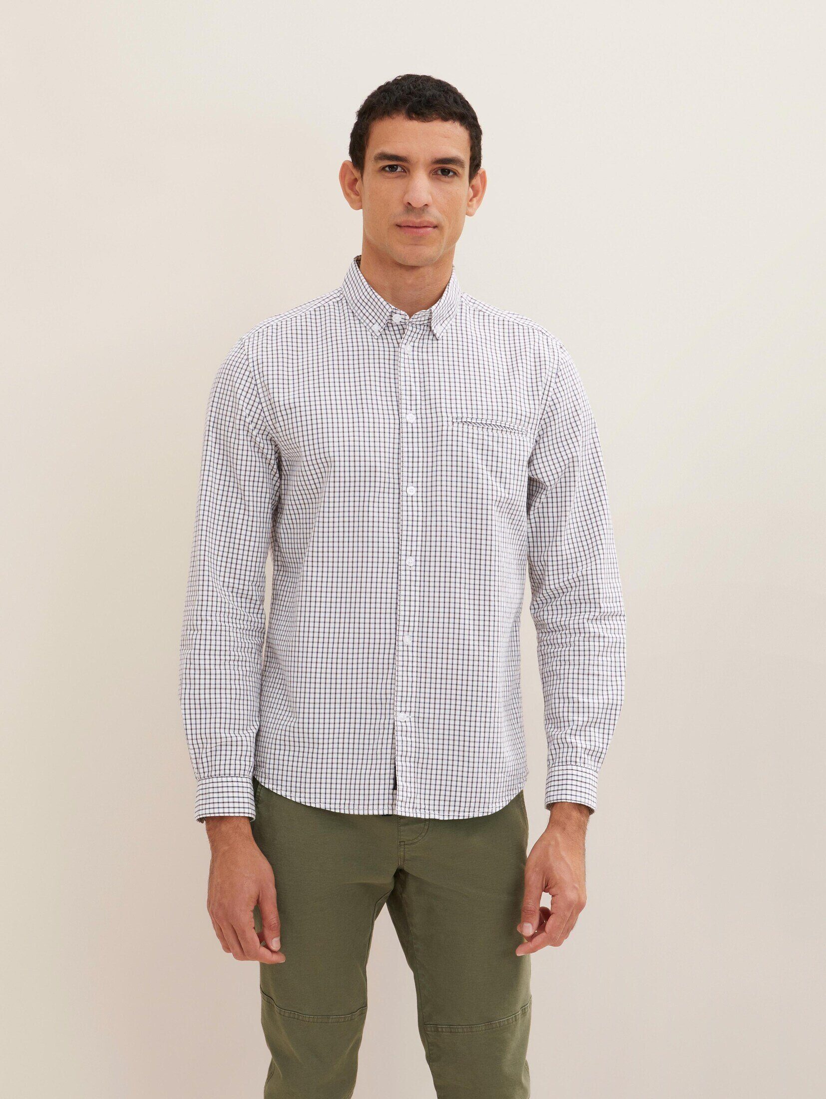 Gemustertes Hemd für Männer (langärmlig mit Knopfleiste und Kentkragen) aus knitterarmen und atmungsaktivem Popeline, mit Brusttasche
