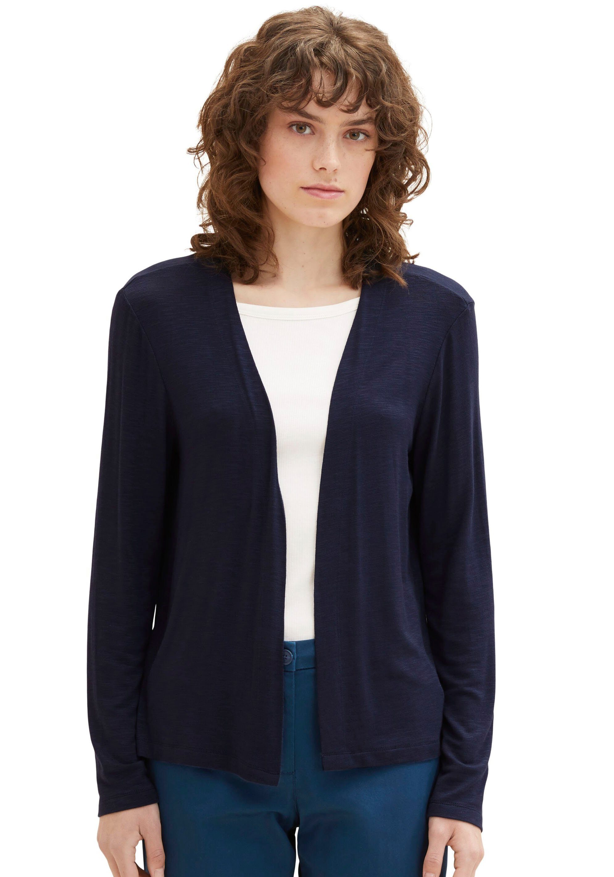 Der Cardigan von TOM TAILOR wird zu deinem Lieblingsstück. Ohne Verschluss lässt er sich schnell überziehen und ganz lässig offen tragen. Der Schnitt des Cardigans ist hüftbedeckend und lässig, sodass du dich nicht eingeengt fühlst.