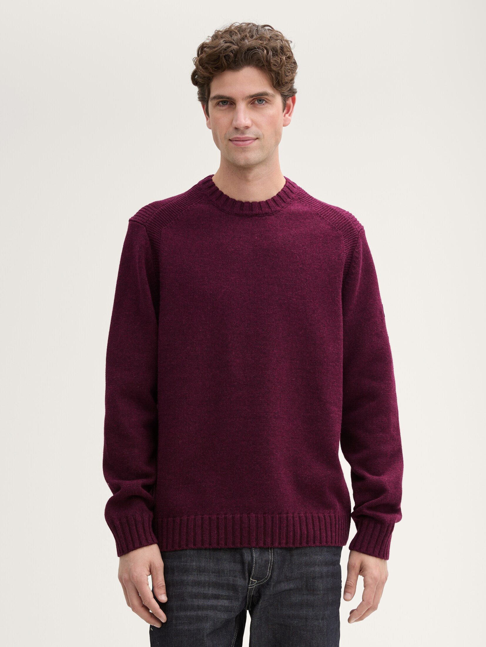 Cosy Strickpullover mit Logo-Badge für Männer (langärmlig mit Rundhalsausschnitt) mit weicher Baumwolle, mit Ripp-Details, mit Logo Badge am oberen Ärmel