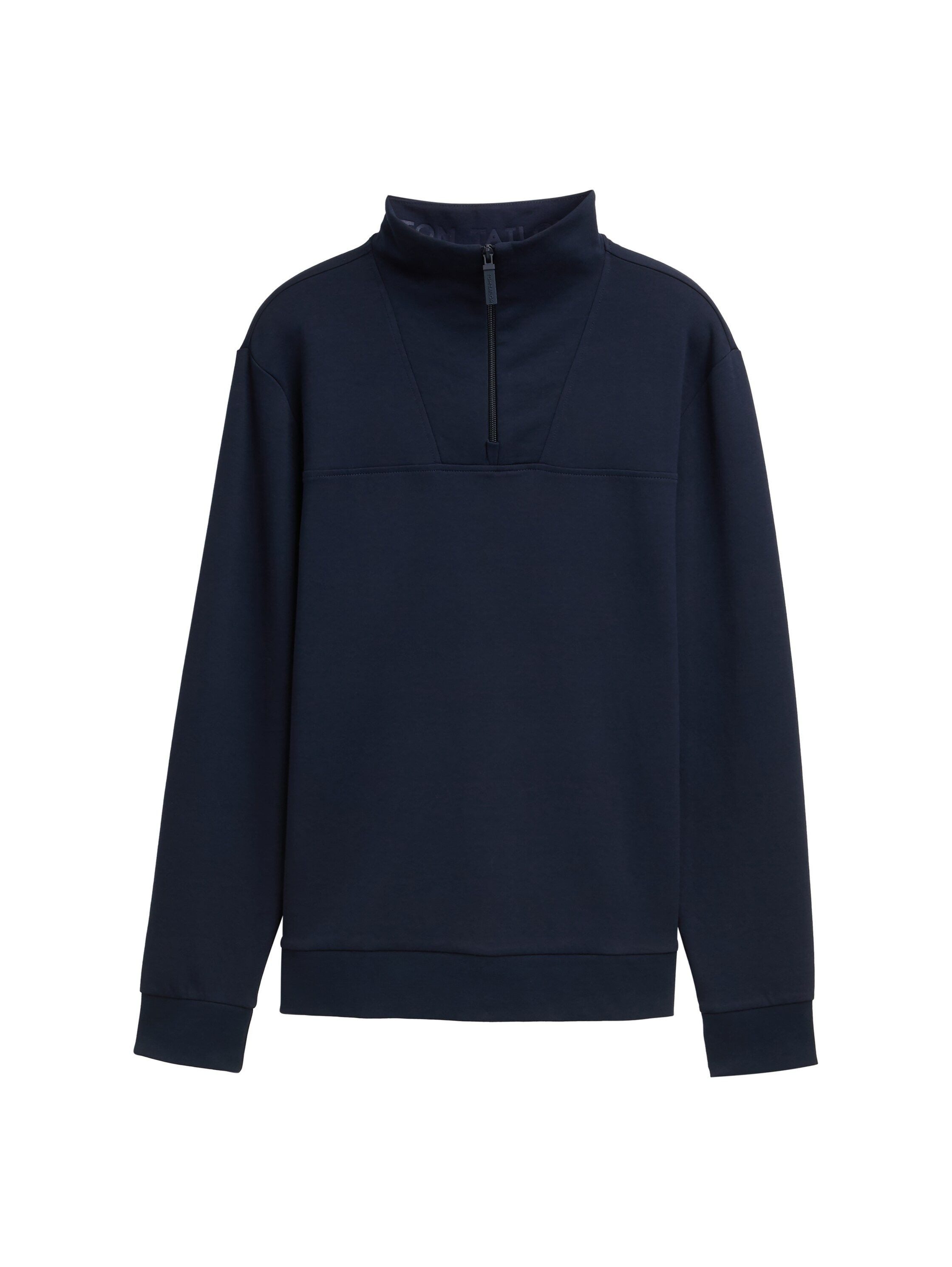 * Troyer Sweatshirt mit Stehkragen, Rippbund und Ziernaht auf der Brust