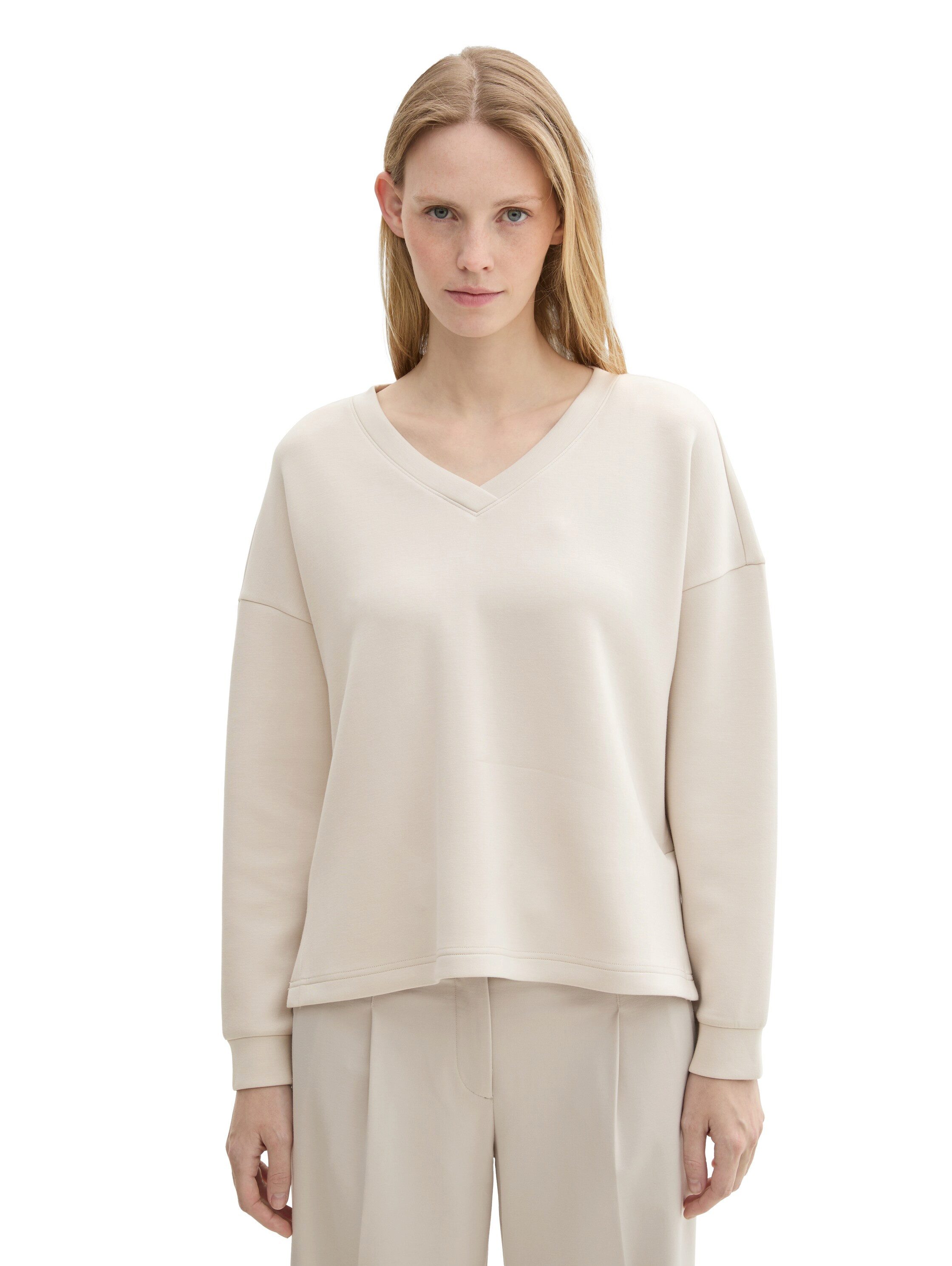 Das Sweatshirt »Scuba« von TOM TAILOR ist praktisch, gemütlich und stylisch — einfach reinschlüpfen und fertig ist der Casual-Style. Die langen Ärmel enden in einem Bündchen, das für guten Sitz sorgt. Dieses Sweatshirt hat einen V-Ausschnitt und ist taillenlang sowie basic geschnitten und umspielt deinen Oberkörper locker.