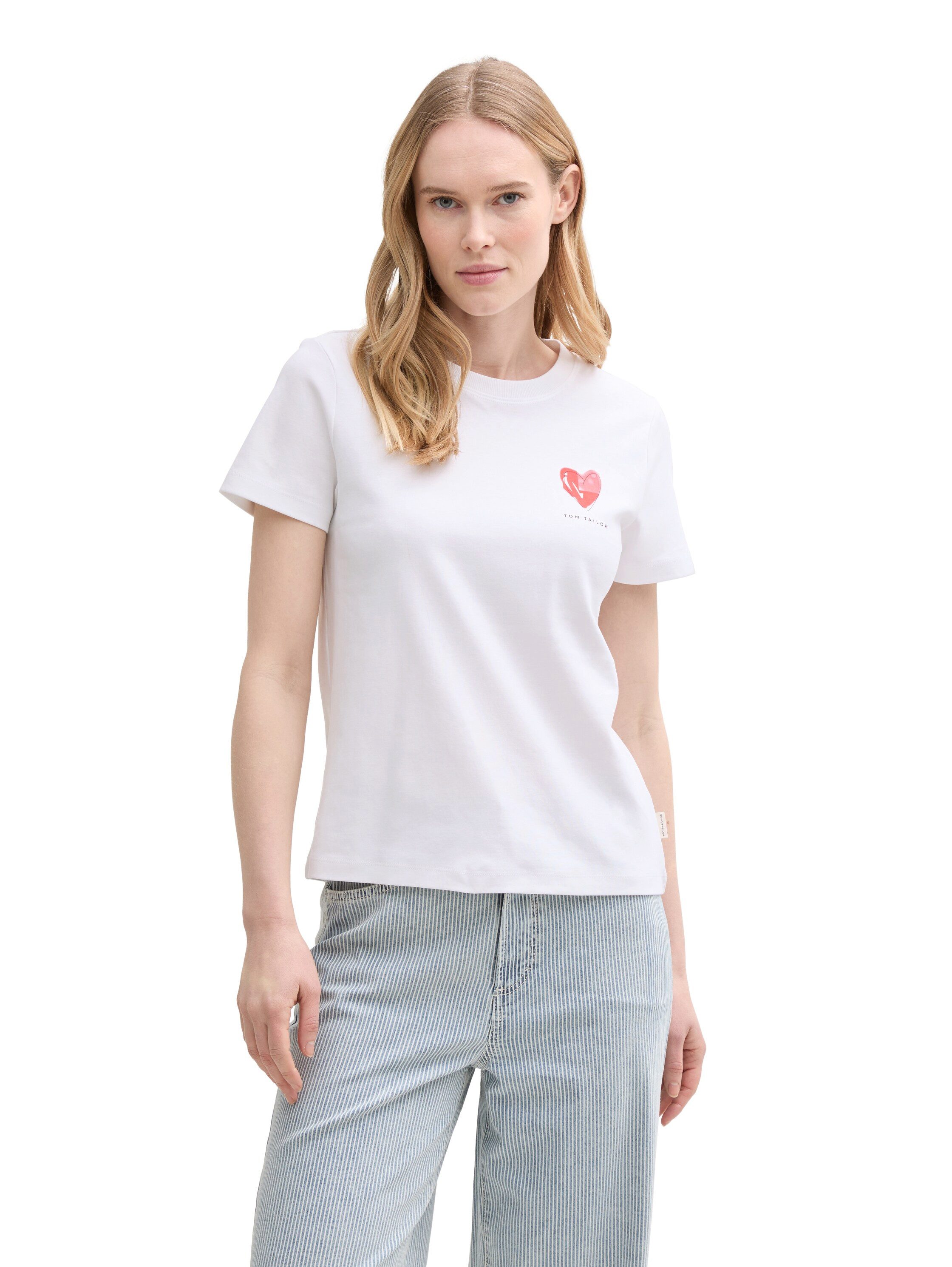 Mit dem T-Shirt von TOM TAILOR stellst du im Handumdrehen ein neues Outfit zusammen. Es wirkt mit dem Markenlabel und dem Print sowohl locker als auch frisch. Dieses Shirt hat einen Rundhalsausschnitt und ist taillenbedeckend sowie basic geschnitten, sodass dein Oberkörper dezent in Szene gesetzt wird.
