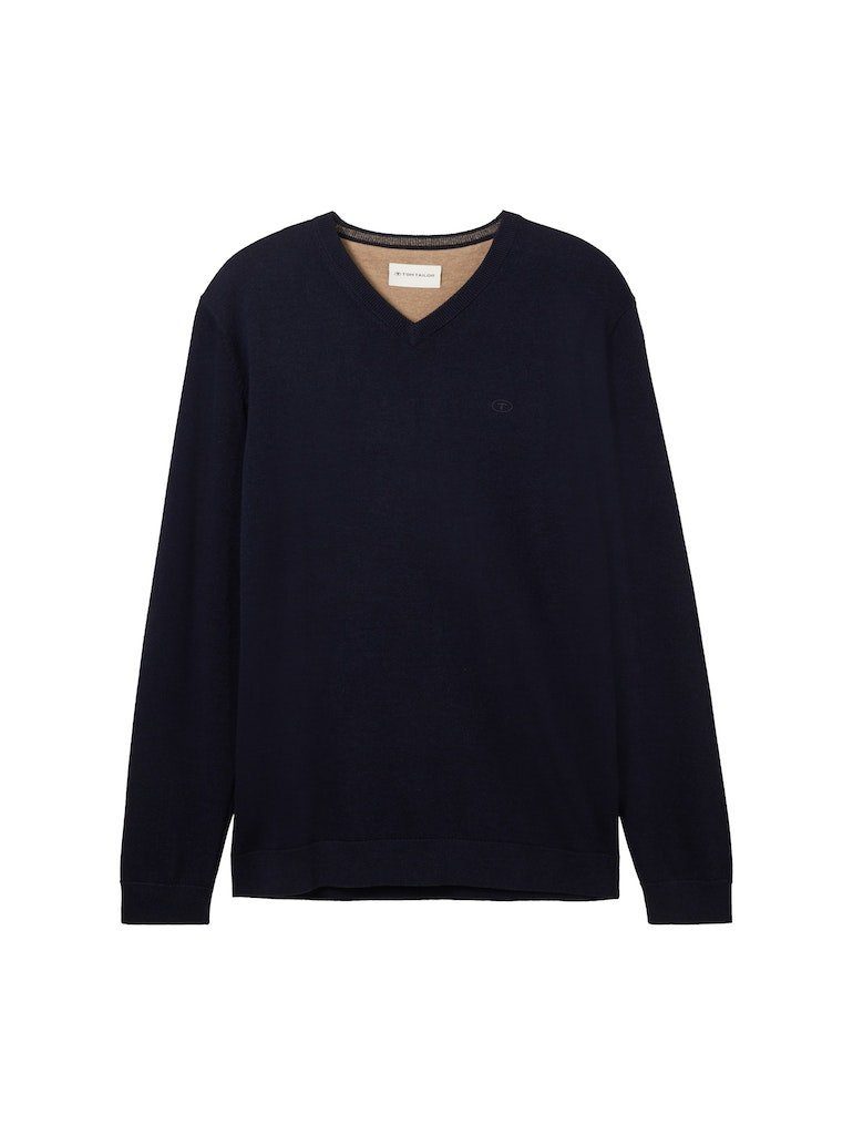 Schau dir den V-Ausschnitt-Pullover von TOM TAILOR mal genauer an. Die langen Ärmel enden in einem Rippbündchen, das für guten Sitz sorgt. Dieser Pullover ist normal sowie basic geschnitten und umspielt deinen Oberkörper locker.