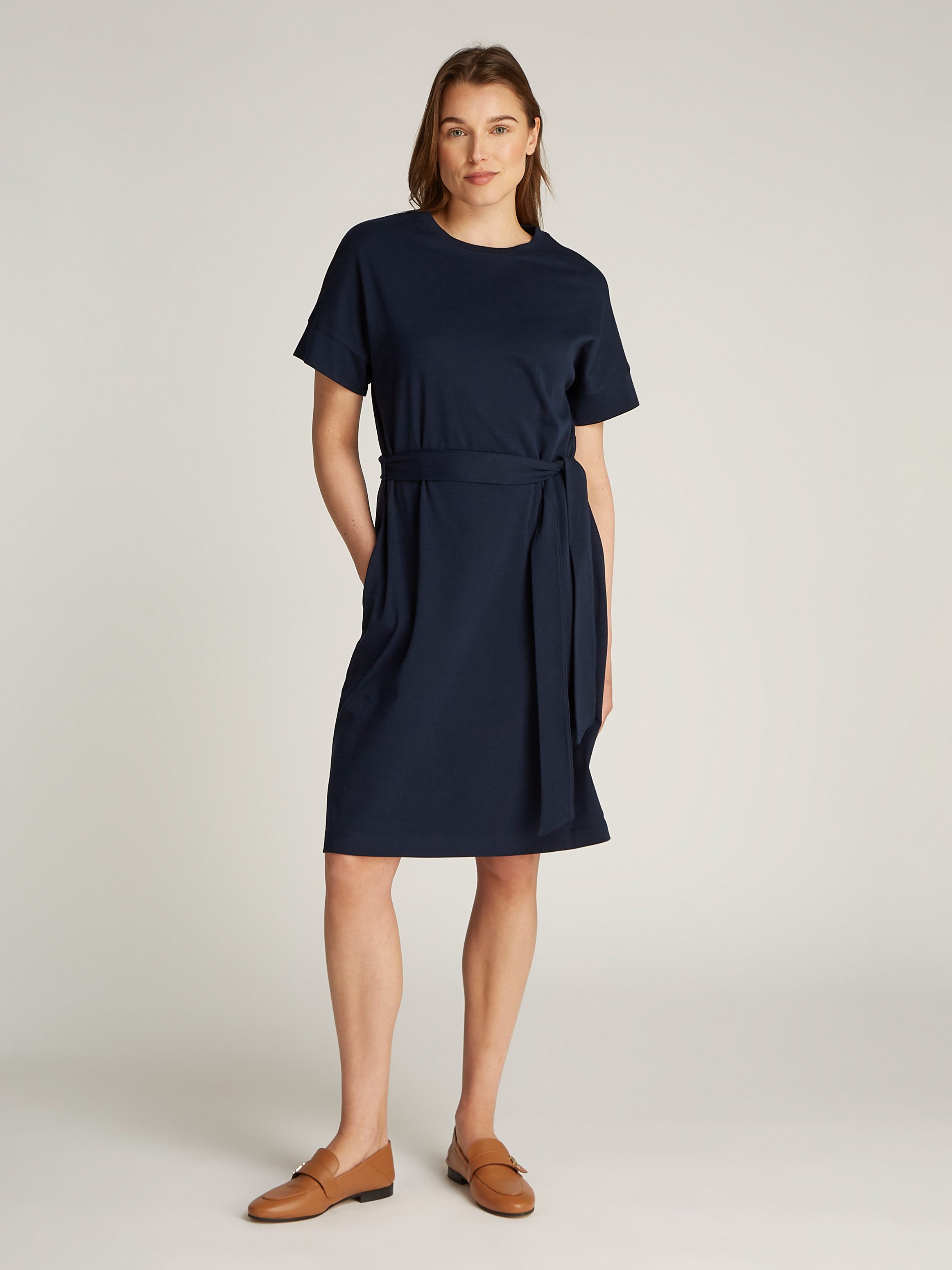 Mit dem knielangen A-Linien-Kleid »COTTON INTERLOCK SHORT DRESS« von Tommy Hilfiger bist du feminin gekleidet. Die A-Linie betont deine Taille.