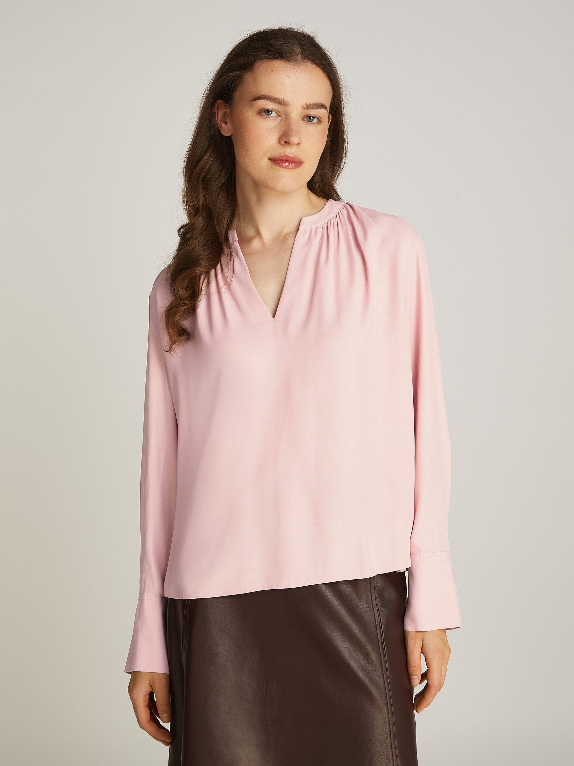 Beruflich oder privat — mit dieser Bluse »SOFT VIS V NECK LS BLOUSE« von Tommy Hilfiger kommst du überall gut an.