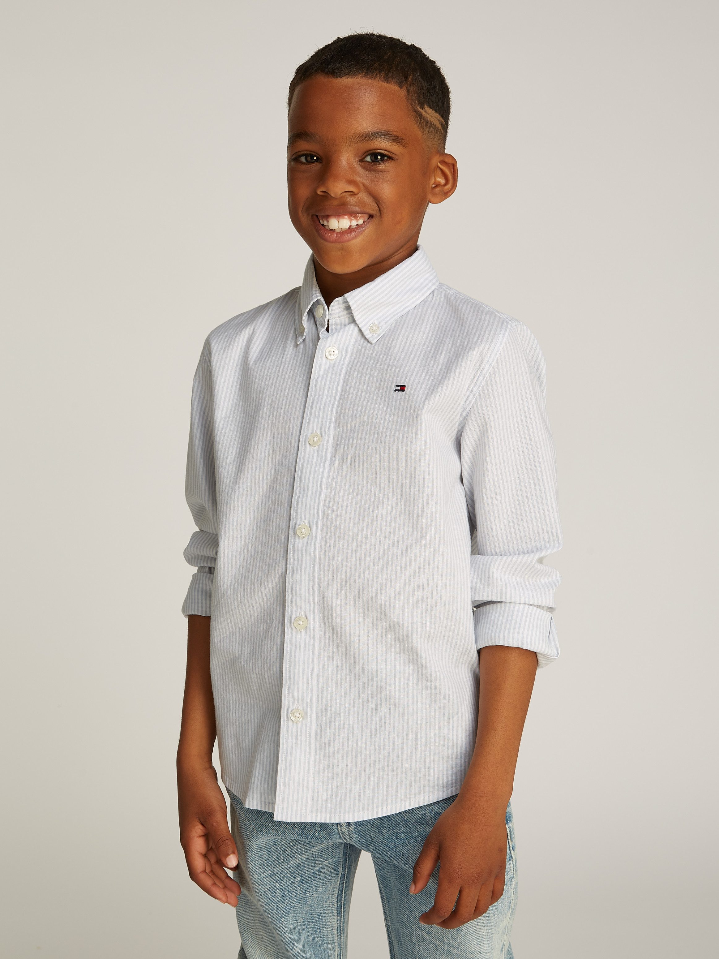 Ob Mode-Blogger oder nicht — dieses Langarmhemd »FLEX ITHACA SHIRT LS« der Marke Tommy Hilfiger finden alle Jungs stylisch. Es wirkt mit dem Brandlabel innen cool und auflockernd. Der Button-down-Kragen kommt ohne Kragenstäbchen und gestärkte Krageneinlage aus, denn kleine Knöpfe fixieren die Kragenspitzen und sorgen für guten Halt bei jeder Bewegung. Dank der Knopfleiste ist das An- und Ausziehen sehr einfach. Die langen Ärmel enden in einer geknöpften Manschette. Es ist basic geschnitten, sodass die Bewegungsfreiheit nicht leidet.