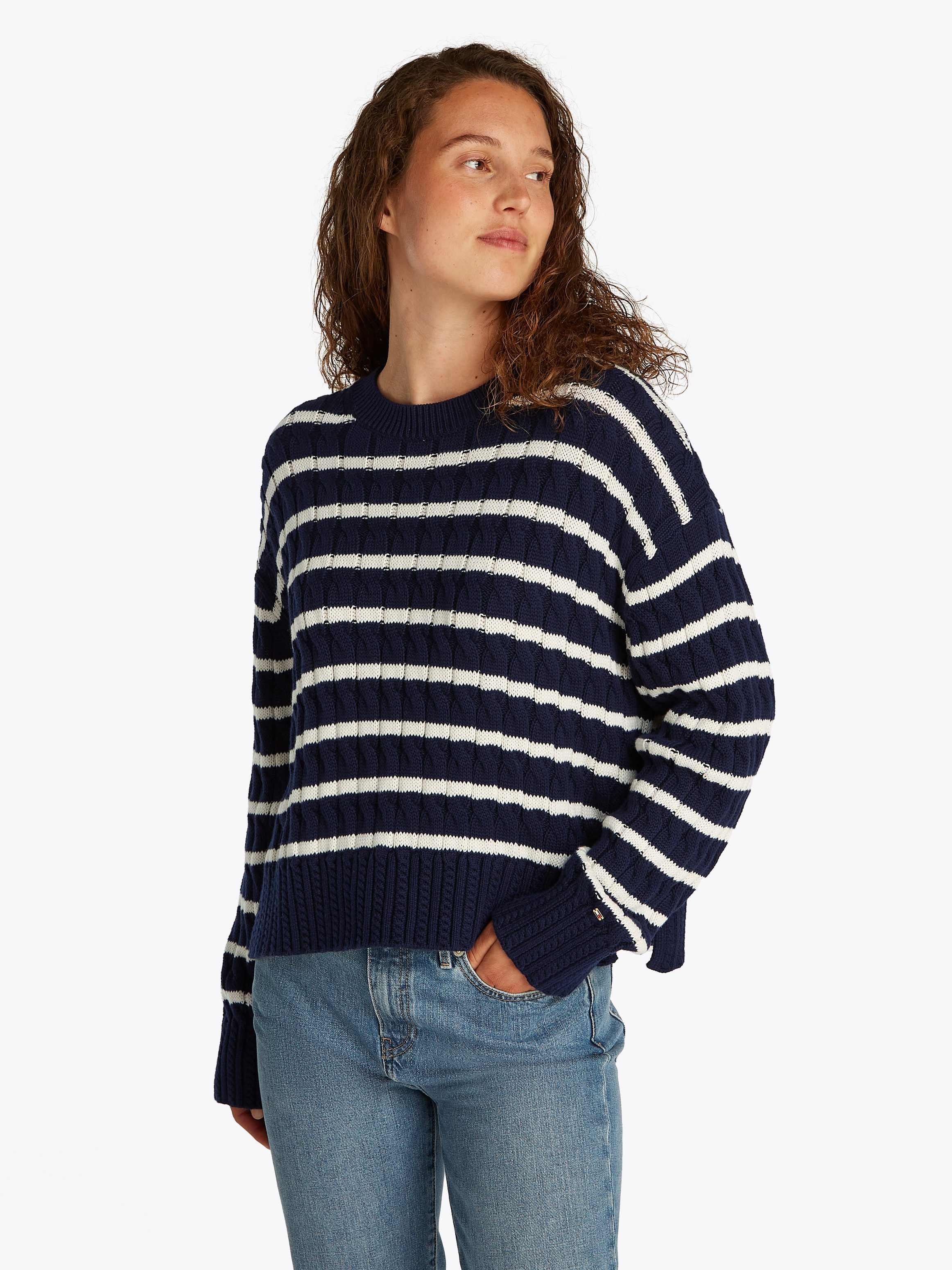 Kuschel dich in deinen neuen Lieblingspulli »SOFT CO CABLE C-NK LS SWT« von Tommy Hilfiger!