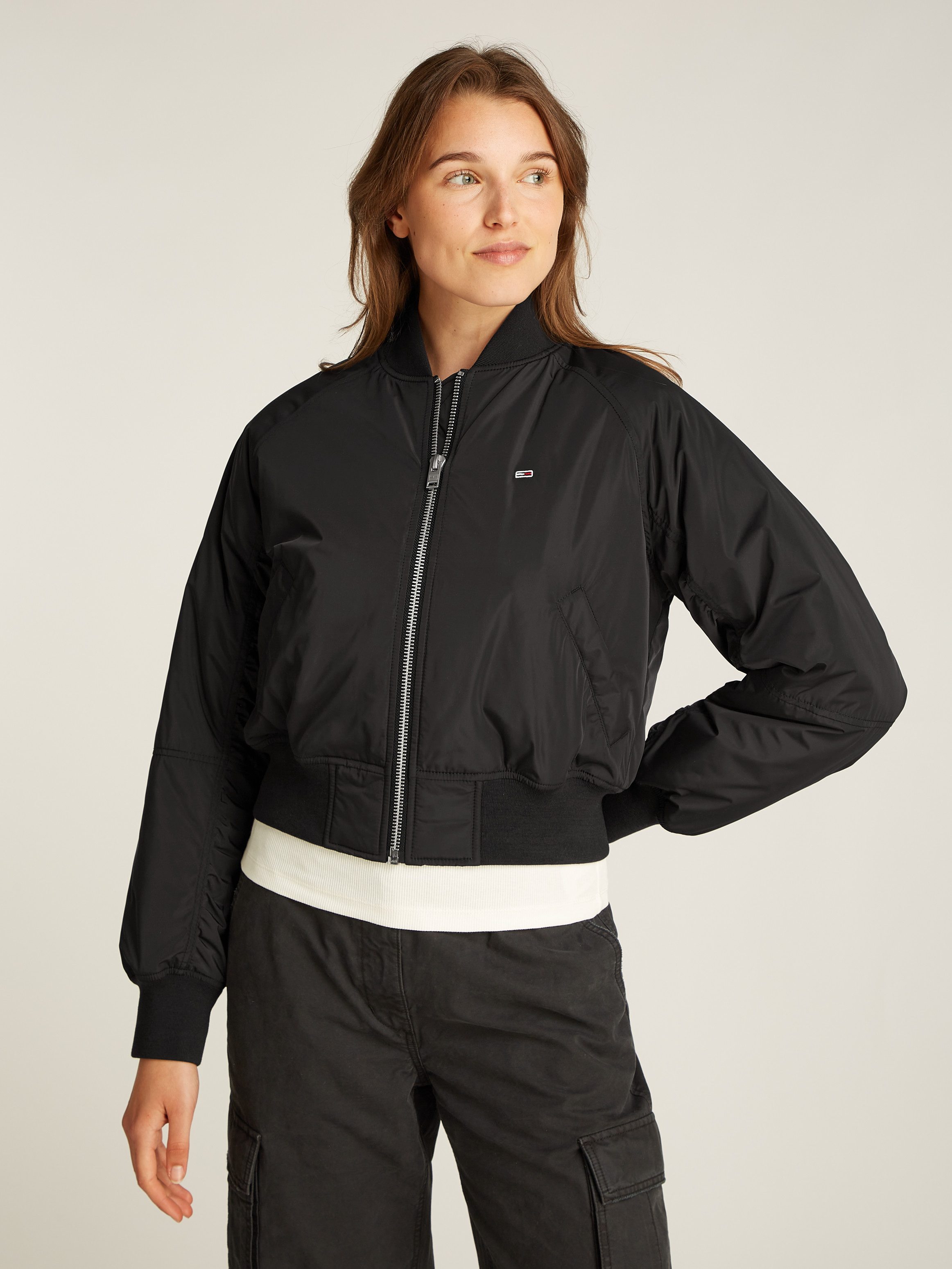 Die Damen-Bomberjacke von Tommy Jeans ist eine gute Wahl — für den Stadtbummel oder das gemütliche Zusammensitzen im Garten.