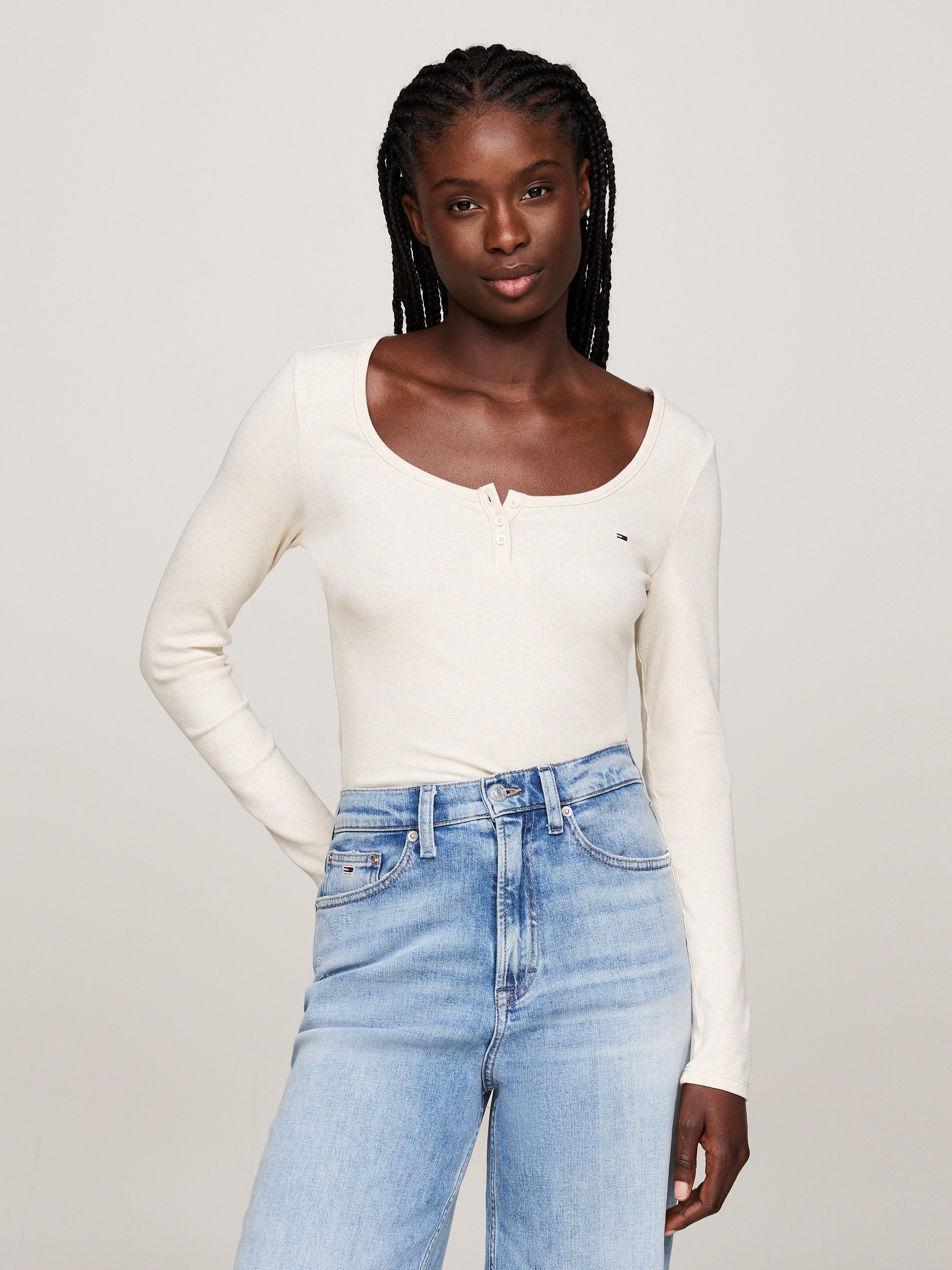 In Sachen Styling machst du mit diesem Shirt »TJW MELANGE HENLEY LS EXT« von Tommy Jeans Curve nichts falsch!