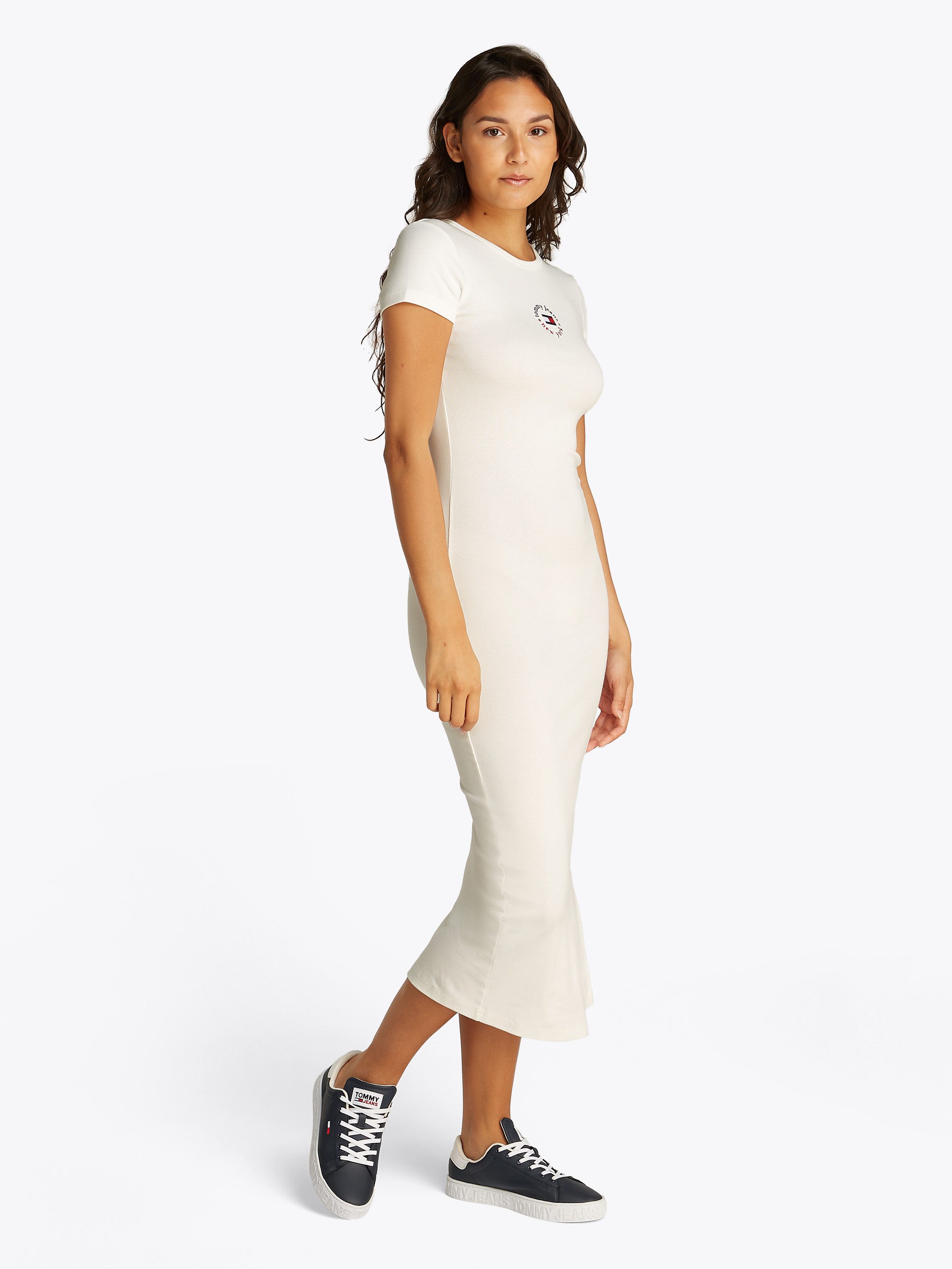 Bist du gerne leger unterwegs, ist das wadenlange Jerseykleid »TJW BODYCON LOGO 2 DRESS« von Tommy Jeans gut geeignet für dich. Der schmale Schnitt betont deine Figur.