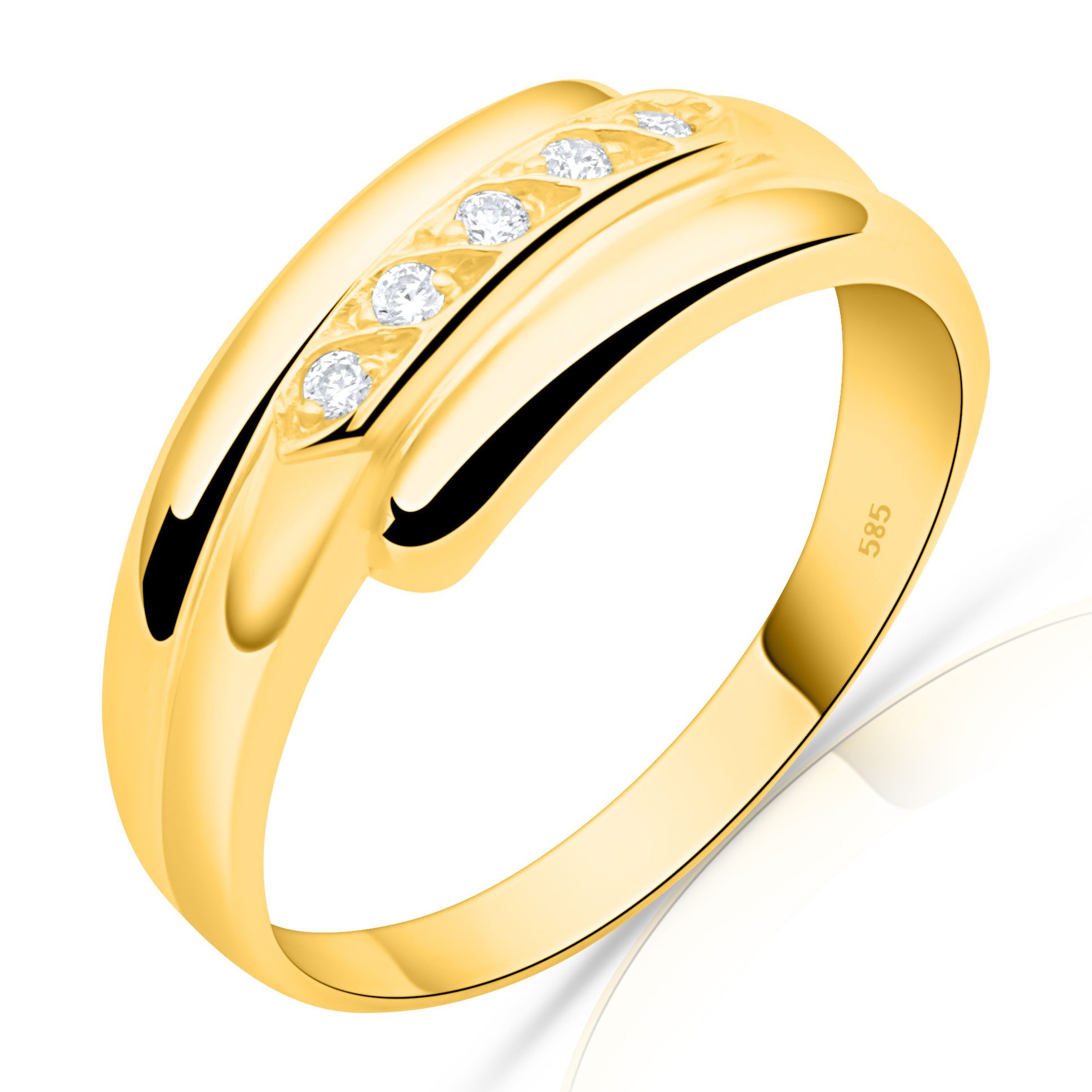 Ein Hauch von Luxus für jeden Tag – dieser edle Cocktailring vereint modernes Design mit zeitloser Eleganz. Gefertigt aus hochwertigem 585er Gold (14 Karat) und „Made in Italy“, steht dieses Schmuckstück für höchste Qualität und feinste Handwerkskunst. Die hochglanzpolierte Oberfläche bringt das warme Leuchten des Goldes wunderschön zur Geltung und verleiht dem Ring eine strahlende Präsenz. Fünf funkelnde, weiße Zirkonia-Steine setzen stilvolle Akzente und unterstreichen die exklusive Optik des Rings. Die leicht geschwungene, dynamische Form mit einer variierenden Breite von 3 bis 8,6 mm sorgt nicht nur für ein harmonisches Design, sondern auch für angenehmen Tragekomfort. Der Ring liegt geschmeidig am Finger und lässt sich hervorragend zu verschiedenen Outfits kombinieren – ob zu eleganter Abendmode oder als stilvoller Alltagsbegleiter. Das moderne, aber dennoch klassische Design macht diesen Ring zu einem vielseitigen Schmuckstück, das sowohl allein getragen als auch mit weiteren Ringen kombiniert werden kann. Geliefert wird der Cocktailring in einer eleganten Verpackung inklusive Echtheitszertifikat – ideal als besonderes Geschenk oder um sich selbst einen Hauch italienischer Eleganz zu gönnen. Ein echter Blickfang mit Stil, Substanz und Glanz.