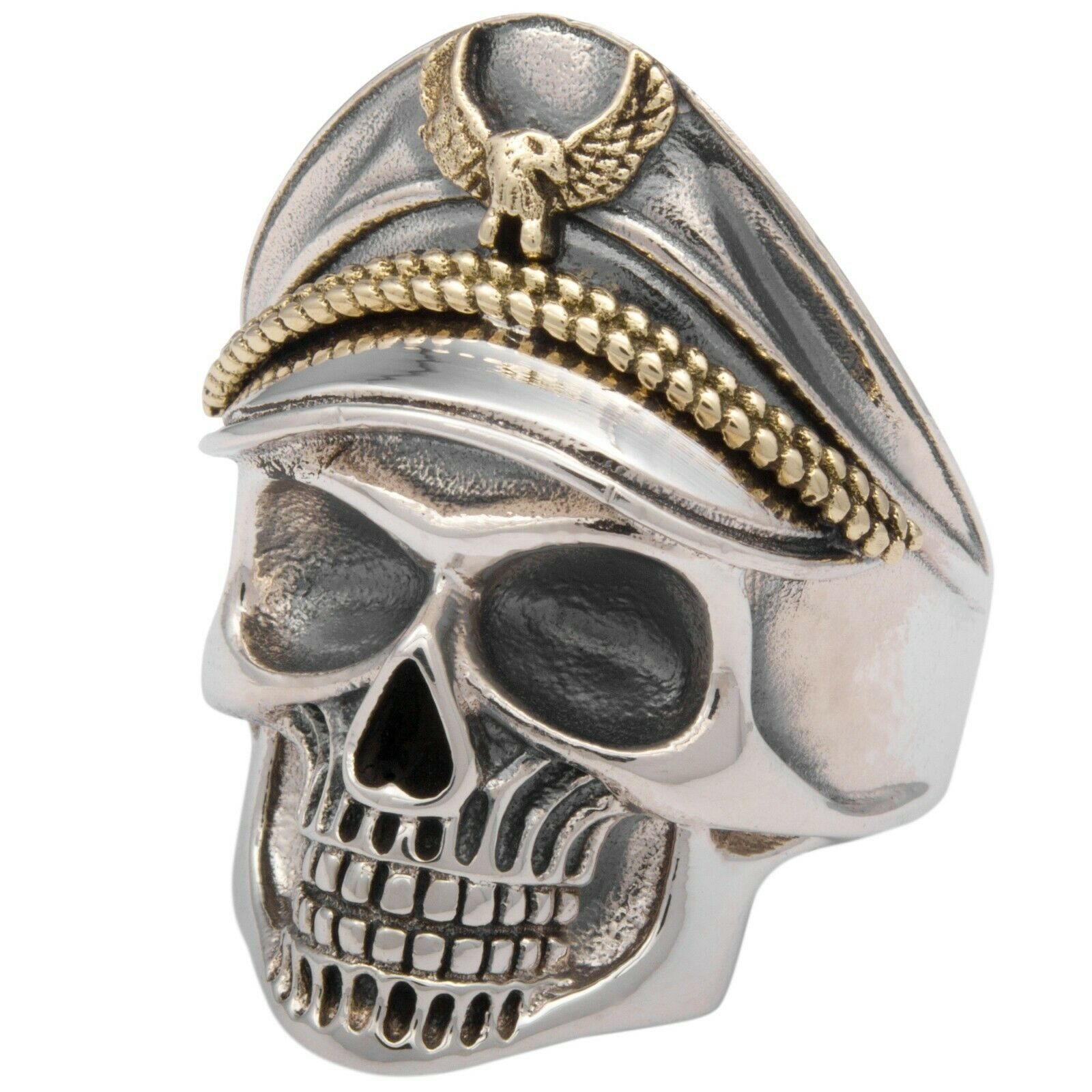 Kappe: Die detailreiche Kappe des Totenkopfs trägt ein Adlerlogo, das dem Ring zusätzlichen Charakter und eine majestätische Note verleiht.