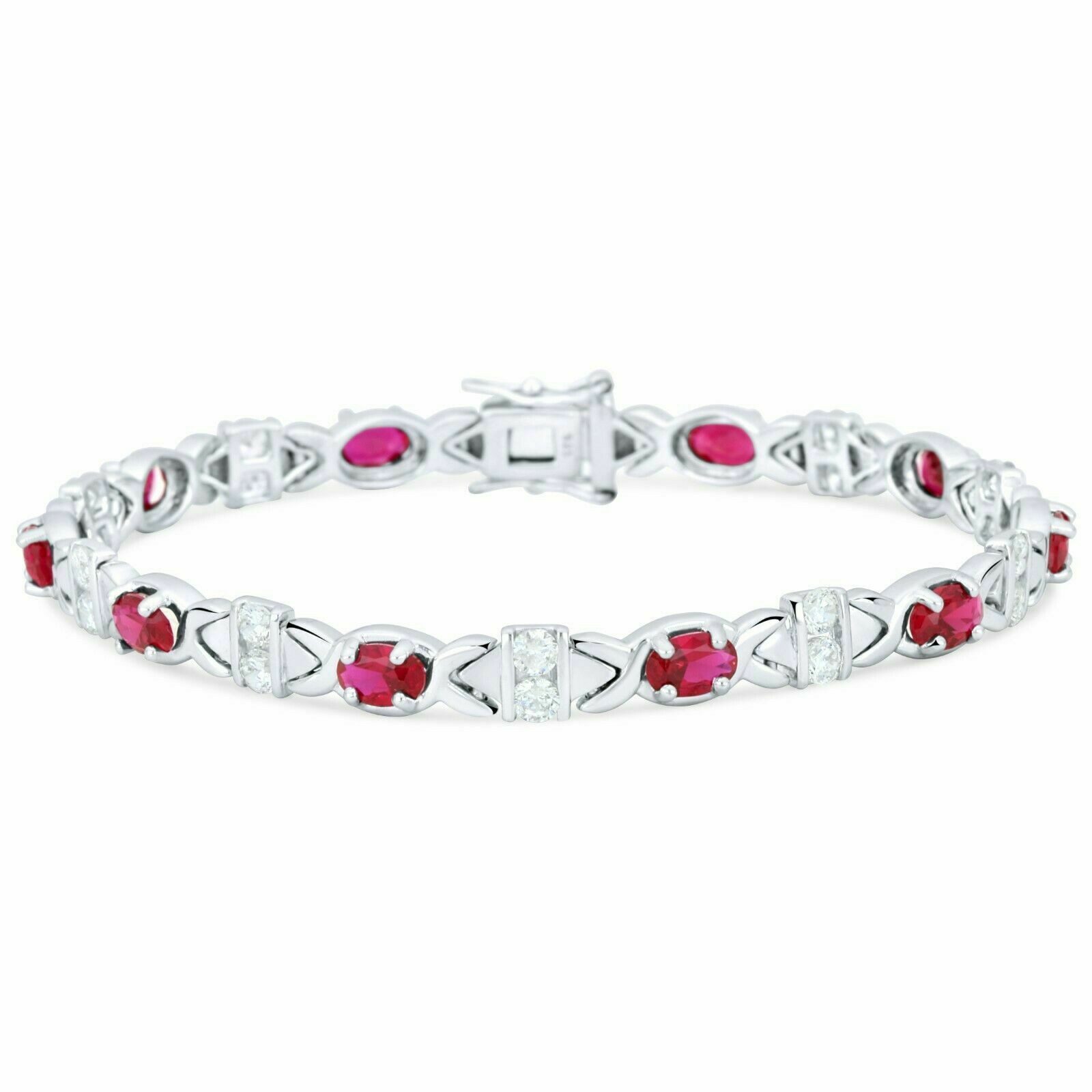 Rote Zirkonia-Steine sind gleichmäßig entlang des Armbands eingefasst und bieten einen auffälligen Kontrast zum kühlen Silber. Diese Steine funkeln intensiv und ziehen alle Blicke
