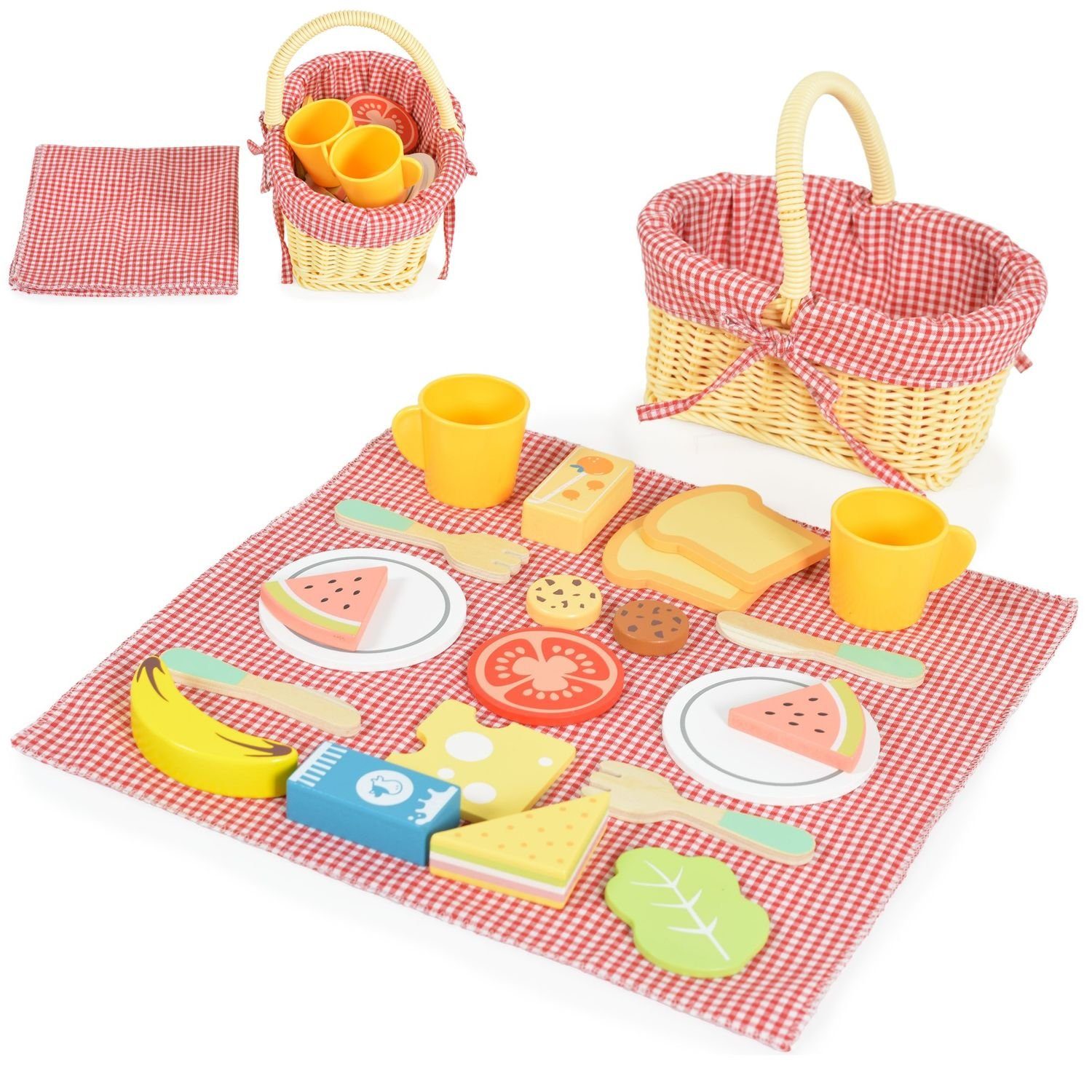 Besonderheiten Artikel Tooky Toy Spielzeug Picknickkorb TK454 Holz, Picknickdecke, Teller, Lebensmittel:
