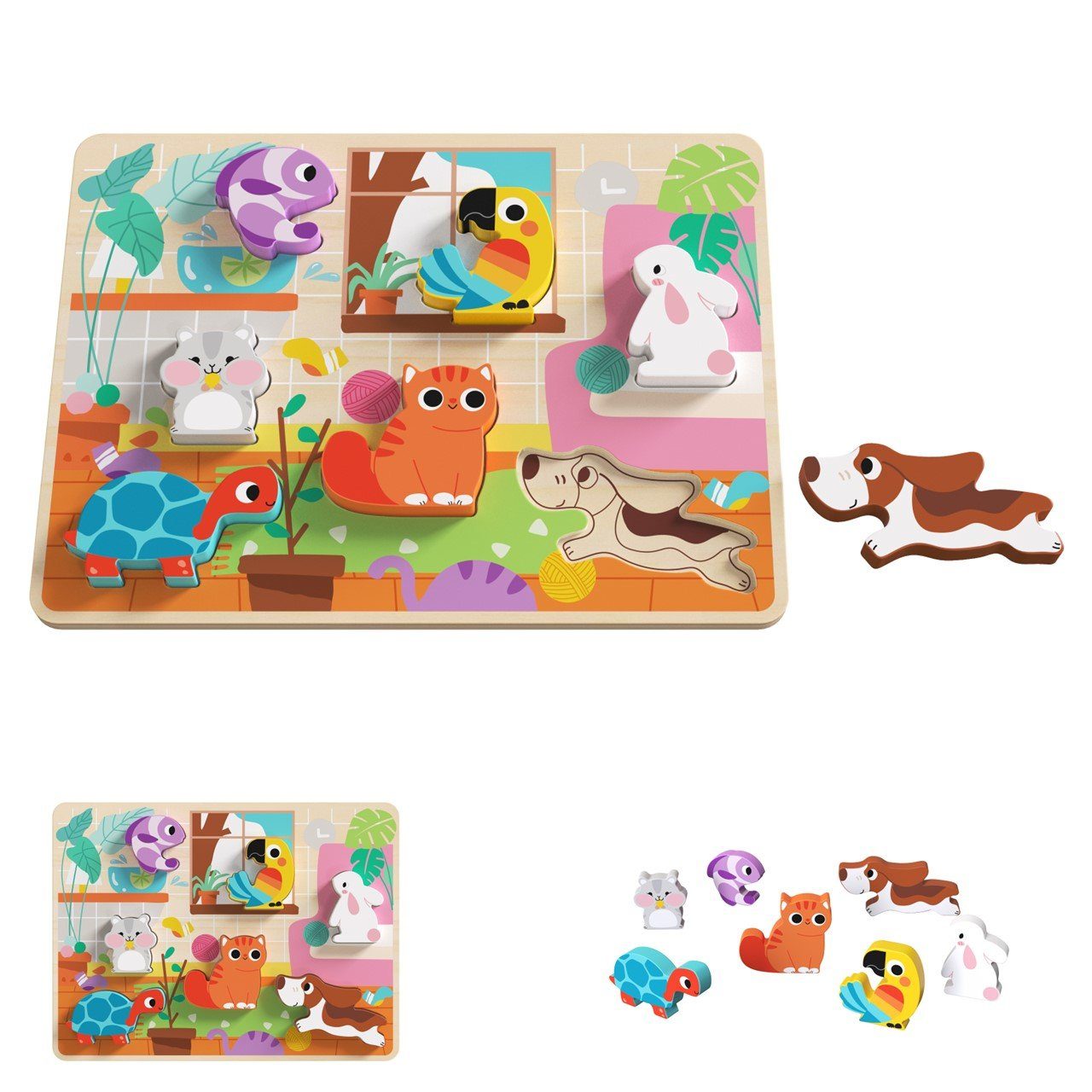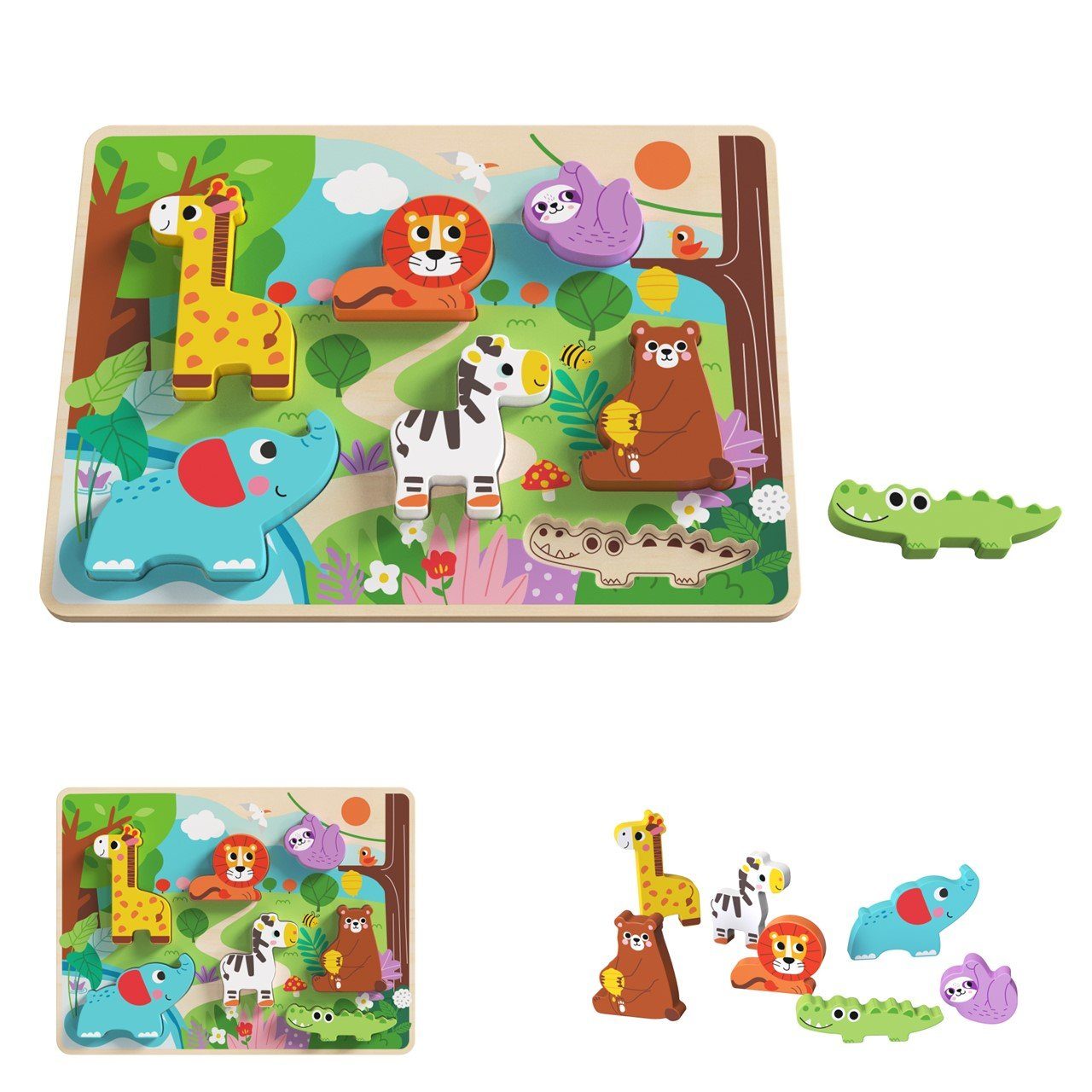 Впередe Informationen Перейти к товару Tooky Toy 3D Kinder Holz-Puzzle Tiere, 8-teiliges Steckpuzzle, ab 12 Monaten: