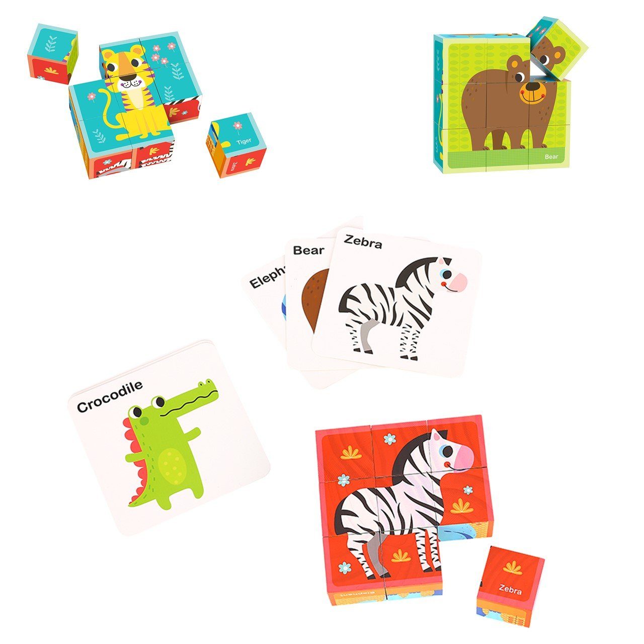 Besonderheiten Artikel Tooky Toy Würfelpuzzle TL690, aus Holz, 15-teiliges Tierblockpuzzle, ab 2 Jahren: