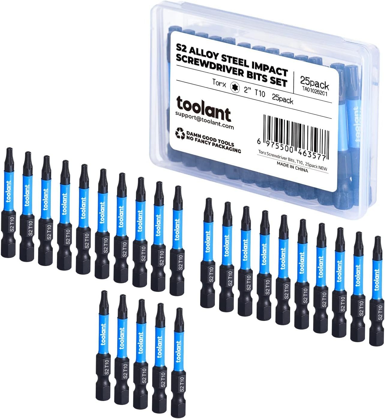 Das toolant Schlag-Torx Bit Set 25-tlg. (T10, 5,1 cm) ist die perfekte hochwertige und preiswerte Alternative zu teuren Markenbits. Gefertigt aus robustem S2-Legierungsstahl, bieten die Bits eine extrem hohe Lebensdauer – bis zu 10× länger als Standard-Bits. Die integrierte Torsionszone absorbiert Drehmomentspitzen zuverlässig und reduziert Brüche. Dank CNC-gefräster Spitzen sitzen die Bits präzise im Schraubenkopf, was Abrutschen minimiert und die Arbeit effizienter macht. Die Manganphosphat-Oberfläche schützt dauerhaft vor Rost. Die magnetischen Power-Bits ermöglichen ein schnelles Aufnehmen von Schrauben, ohne dass der Magnetismus nach mehrfacher Nutzung nachlässt. Das Set enthält 25 Stück T10 Schlag-Torx Bits (5,1 cm) und wird in einer praktischen Aufbewahrungsbox geliefert. Es ist ideal für den Einsatz mit Schlagschrauber, Bohrer oder Schraubendreher und deckt eine Vielzahl von Anwendungen ab: - Heimwerkerprojekte und Reparaturen im Haushalt - Automobile und Kfz-Reparaturen - Möbelmontage und Holzverarbeitung - Allgemeine Schraubarbeiten Warum toolant? - Hochwertiger S2-Stahl und CNC-gefräste Spitzen für langlebige Performance - Magnetische Power-Bits erleichtern die Handhabung - Exzellentes Preis-Leistungs-Verhältnis, praktische 25-teiliges Set - Ideal für Profis und Heimwerker gleichermaßen - Schlag-Torx Bits T10,25 Stück Torx Schrauberbits,Magnetische Torx Bits 5,1 cm,S2 Stahl Torx Bit Set,Langlebige Impact Bits,Hochwertige Torx Bits
