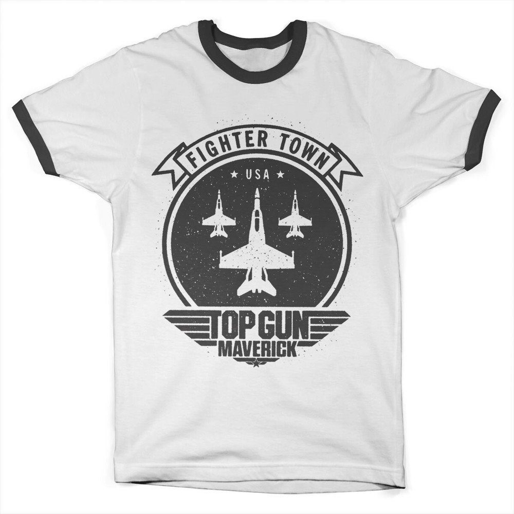 Das Top Gun Maverick Fighter Town Ringer Tee in Weiß-Schwarz ist ein absolutes Must-Have für alle Fans des legendären Films. Das hochwertige Material sorgt für einen angenehmen Tragekomfort und die klassische Farbkombination verleiht dem Shirt einen zeitlosen Look. Mit dem coolen Print auf der Vorderseite wird jeder zum echten Top Gun Maverick! Der lässige Schnitt und die hochwertige Verarbeitung machen das Top Gun Maverick Fighter Town Ringer Tee zu einem vielseitigen Begleiter für den Alltag. Egal ob beim Sport, in der Freizeit oder beim Ausgehen - mit diesem Shirt setzt du ein modisches Statement und zeigst deine Verbundenheit zum Kultfilm Top Gun. Kombiniert mit Jeans und Sneakern entsteht im Handumdrehen ein lässiger Look, der alle Blicke auf sich zieht. Das Top Gun Maverick Fighter Town Ringer Tee ist nicht nur ein stylisches Kleidungsstück, sondern auch ein echtes Sammlerstück für alle Fans. Hol dir jetzt dieses exklusive Shirt und zeige deine Leidenschaft für Top Gun Maverick!