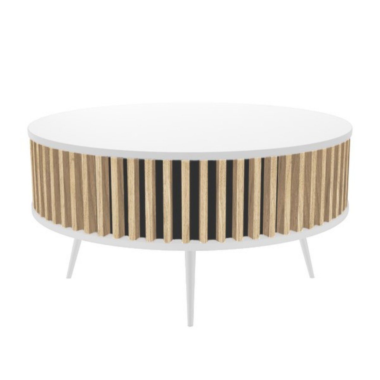 Entdecken Sie den modernen Runden Couchtisch RONDA BENCH, eine stilvolle Bereicherung für jedes Wohnzimmer, Büro, Zimmer oder Hotel. Dieser elegante Tisch kombiniert schlichte Eleganz mit modernem Design und passt sich nahtlos in jede Umgebung ein. Der RONDA BENCH Couchtisch ist mehr als nur ein Möbelstück - er ist ein Statement. Mit seinem minimalistischen Design und der runden Form bietet er die perfekte Mischung aus Ästhetik und Funktionalität. Die Tischplatte, mit einem Durchmesser von 90 cm, bietet ausreichend Platz für Ihre Kaffeetassen, Zeitschriften und dekorativen Gegenstände. Besonderen Charme verleiht ihm die Kombination aus Möbelplatten und modischen, dünnen Lamellen. Diese Lamellen sind aus hochdichter MDF-Platte gefertigt und mit einem hochwertigen Furnier überzogen, das die warme Farbe von handwerklich hergestellter Eiche nachahmt. Diese trendige Gestaltung macht ihn zum Blickfang in jeder Inneneinrichtung. Die Stabilität wird durch solide, weiß lackierte Holzbeine gewährleistet, die nicht nur für eine beeindruckende Optik sorgen, sondern auch eine lange Lebensdauer garantieren. Mit einer Tischhöhe von 46 cm und Beinhöhe von 23 cm bietet dieser Tisch eine angenehme Höhe für Ihre Entspannungsmomente. Die Montage des RONDA BENCH ist denkbar einfach: Schrauben Sie lediglich die Beine an, und Ihr Tisch ist einsatzbereit. Das Tischgewicht von 25 kg spricht für die Qualität und Robustheit des Tisches. Er ist widerstandsfähig gegen Beschädigungen, Kratzer und Verschüttungen, was ihn zu einem langlebigen Begleiter in Ihrem Zuhause macht. Zusammenfassend ist der RONDA BENCH Couchtisch eine perfekte Ergänzung für jeden, der modernes Design schätzt und gleichzeitig Wert auf Funktionalität und Qualität legt. Er wird zweifellos ein zentrales Element in Ihrer Einrichtung sein und für viele bewundernde Blicke sorgen. MASSE: Höhe: 46 cm Tischplattendurchmesser: 90 cm Beinhöhe: 23 cm MATERIAL: Lamellen: MDF-Platte Tischplatte: Möbelplatte Beine: weiß lackiertes Holz Tischgewicht: 25 kg