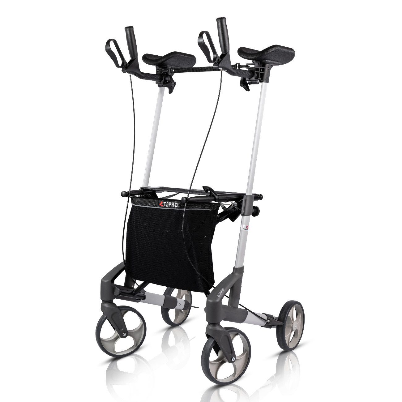 Der faltbare Rollator Topro Troja Walker² ist mit Unterarmauflagen ausgestattet und in der Размер S und M erhältlich. Besondere Anwendung findet dieses Modell bei Personen mit schmerzhaften Handgelenken oder Deformitäten, welches ein Stützen auf den Händen nicht möglich macht. Zur Entlastung werden die Unterarme auf die Auflagen positioniert und der Rumpf wird aufgerichtet. Somit wird ein stabiles, schmerzfreies und sicheres Gehen ermöglicht.