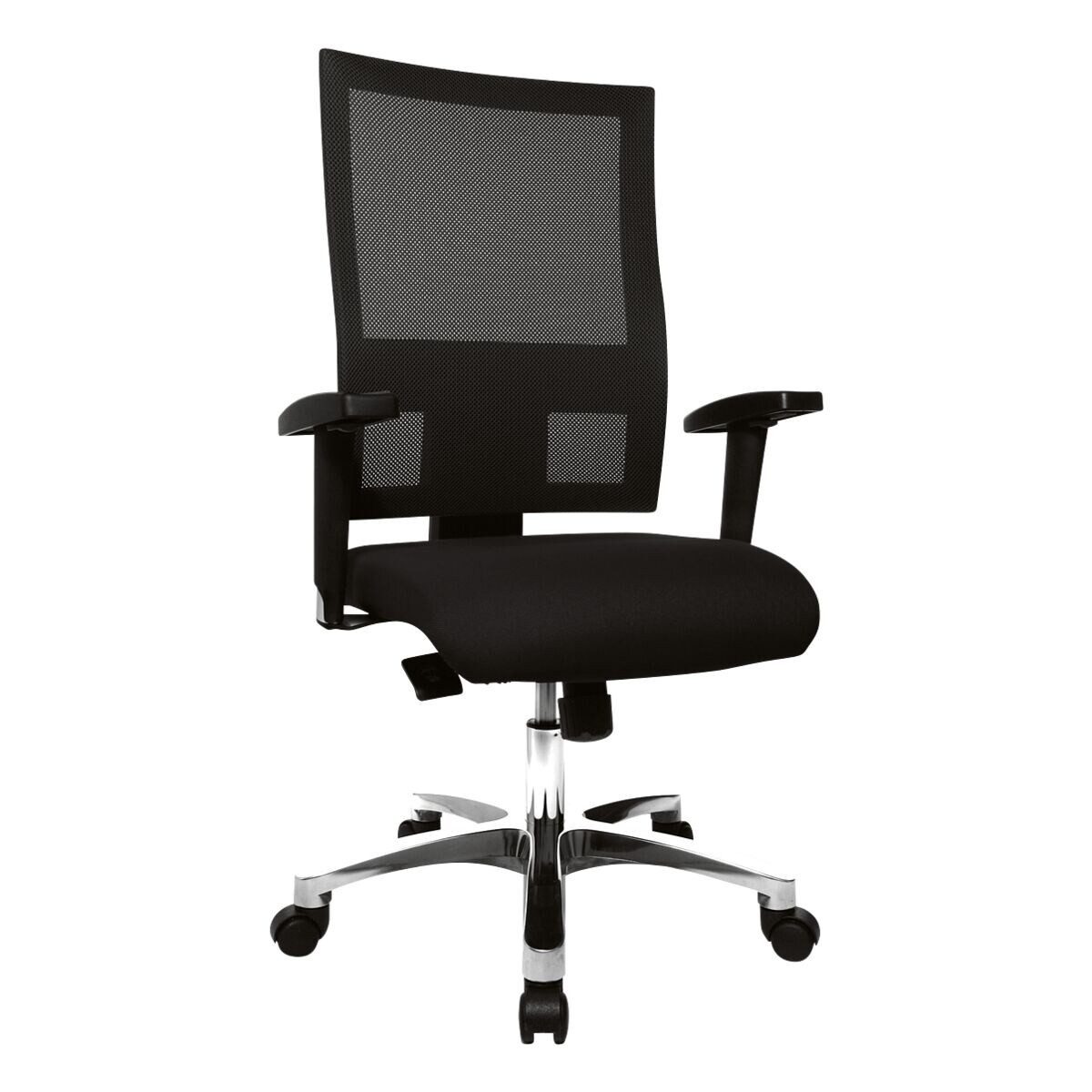 Bürostuhl »Pro Net SY« ohne Armlehnen, mit Punktsynchronmechanik, Flachsitz mit Knierolle, Sitzbreite/-tiefe: 48 / 48 cm, Sitz höhenverstellbar: 44-56 cm, Rückenlehnenhöhe: 55 cm, Bezug Sitz: 100% Trevira CS, Bezug Netz: 100% Polyester, ohne Armlehnen (optional bestellbar), mit aluminiumfarbenen Fußkreuz, mit lastabhängig gebremsten Doppellaufrollen für Weichböden