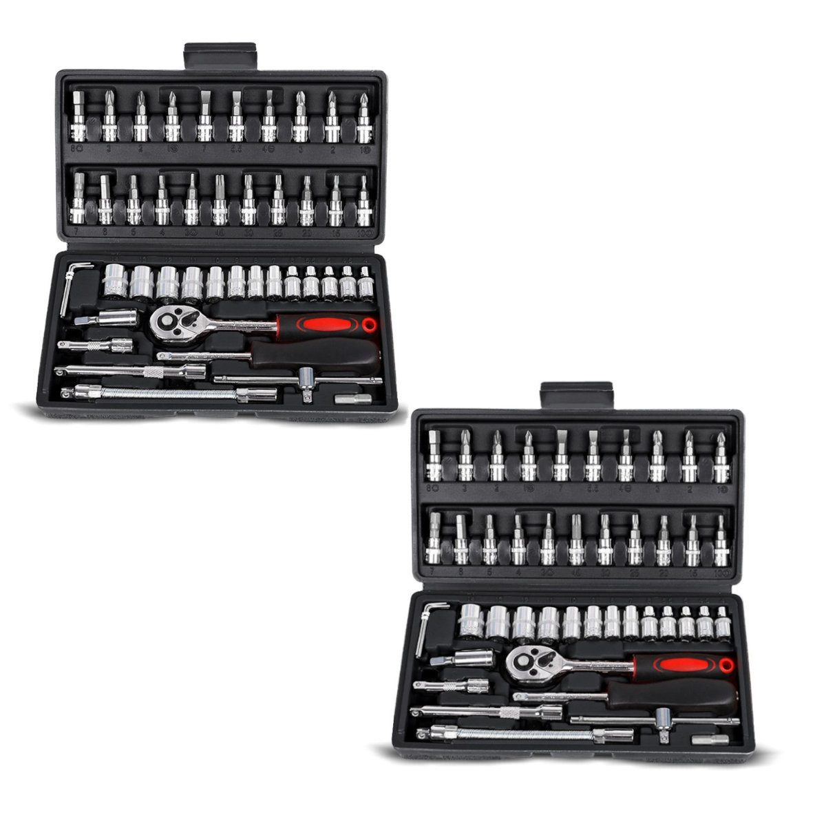 Sitzbank 2x Steckschlüsselsatz / Motorrad Ratschenkasten 46-teilig # Spar-Set