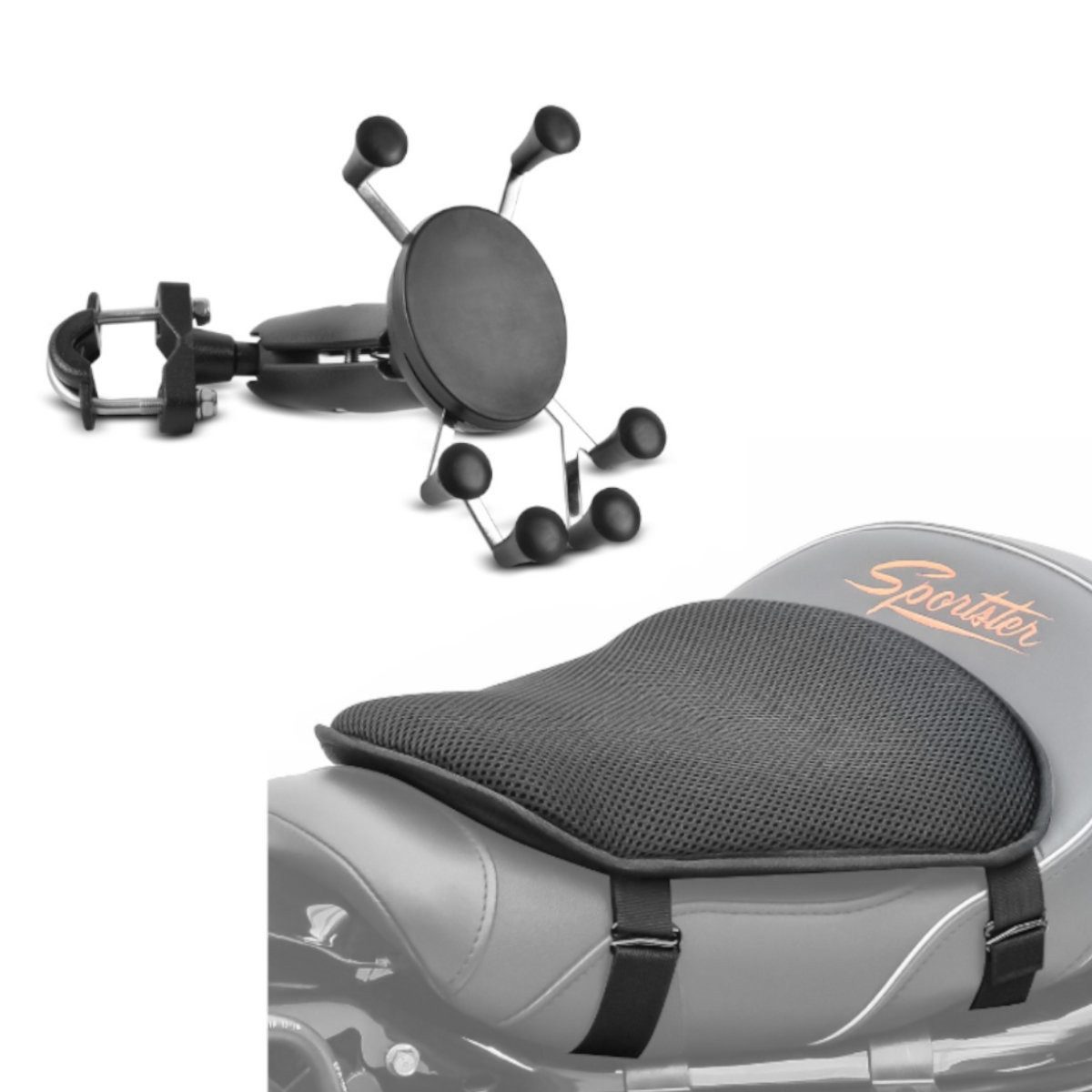 Lieferumfang: Gel Sitzkissen M Tourtecs Universal Komfortkissen schwarz + Smartphonehalter SH8 für Lenker Handyhalter Aluminium Halterung